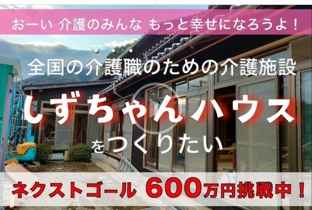●ネクストゴールに挑戦します6月20日23時までの残りの期間で、ネクストゴール600万円に挑戦致します。ネクストゴールでは「私たちに予算が許されたら着手したいな」と思っていたことを実行します。達成できたあかつきには以下の3つの実現を約束いたします。①自分で始めたい人「応援システム」の構築 「自分もいつか地域の古民家で小規模な施設を始めたい」という声が多かったです。それを応援するシステムつくります!具体的にはしずちゃんハウス開設までの準備をまとめたパンフレット「初心者向け あなたが始める小規模施設」を作成します。そして月間の活動、収支報告などを毎月限定公開のミーティングをおこないます。支援者はこのzoom会議に1年間参加いただけます。この会議に参加しながら自分ならどんな施設をつくるか?どんな運営をするか?など考える機会にしていただきたいです。ご支援いただけた方は、随時メール相談なども受付けます。②しずちゃんハウス周辺の悪路の整備しずちゃんハウスから畑にいくまでの道が悪路のため、お年寄りと畑づくりができるように安全な道へと整備をします。③ホームページの整備しずちゃんハウスの日常を公開する場としてホームページを整備します。またしずちゃんハウスのことだけではなく、全国の介護職員の思いが掲載されるホームページにします!引き続き応援宜しくお願い致します!!