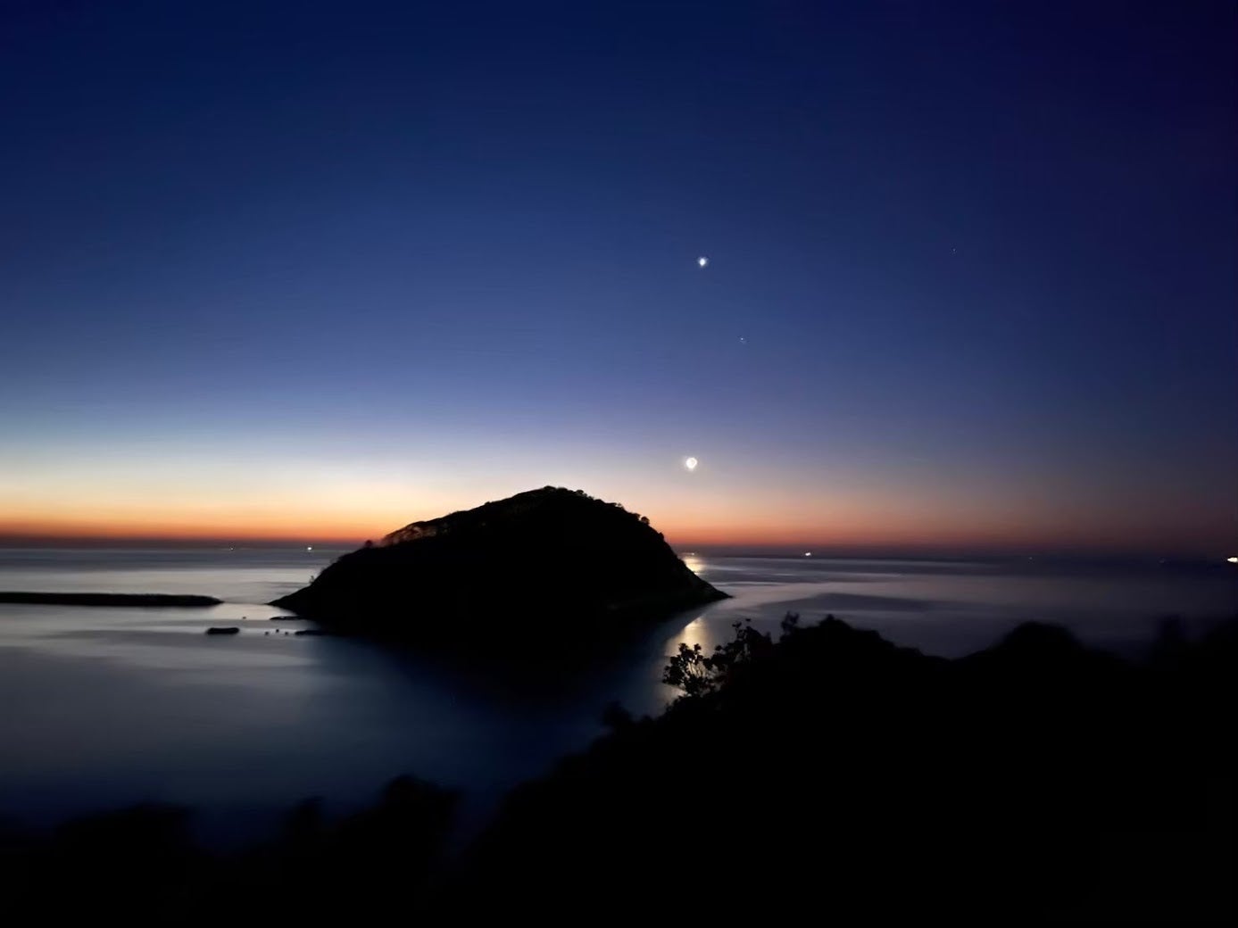 宿から見る月と漁火