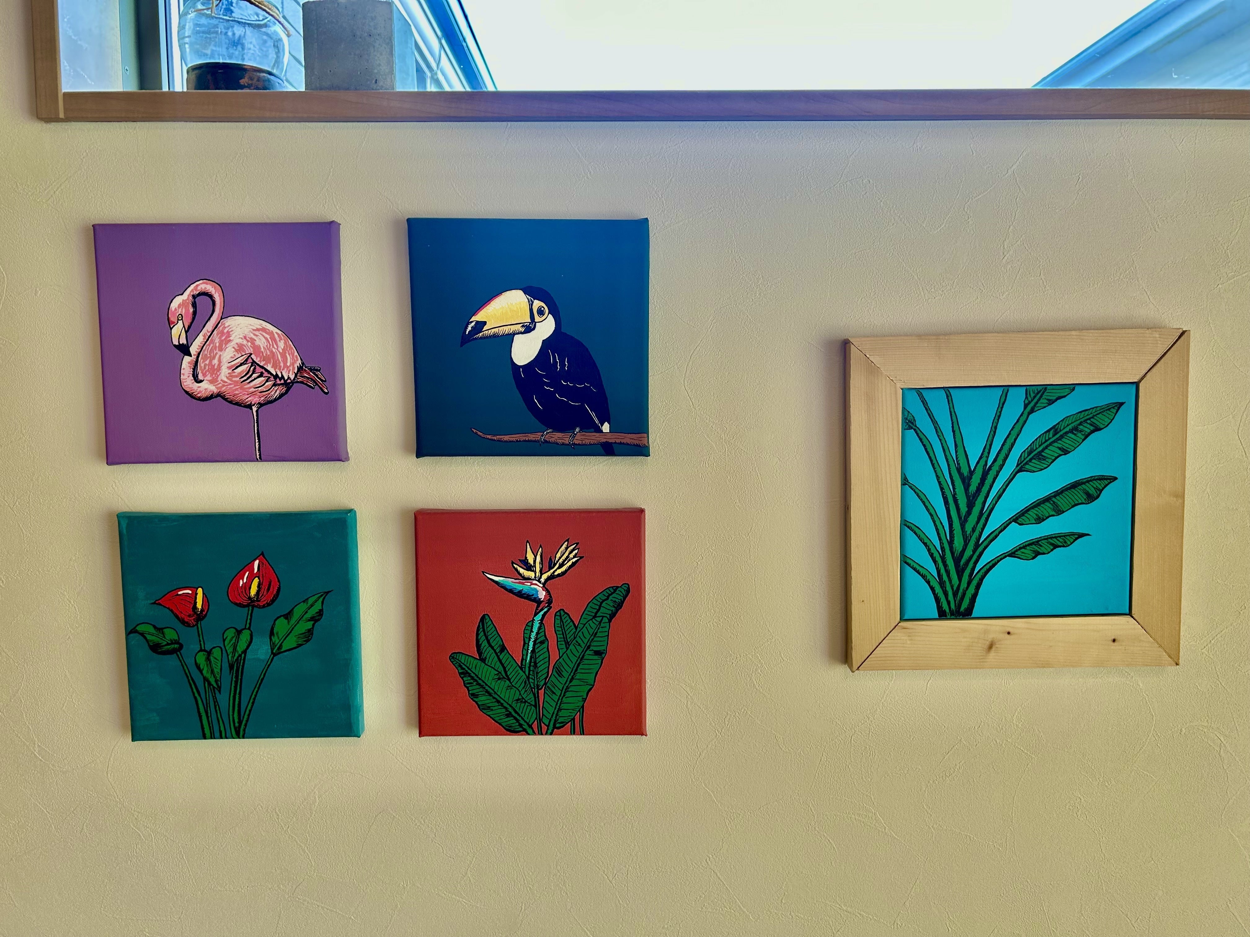 [趣味で描いている南国モチーフのイラスト。いつか自分の作品で店内を彩りたい。]