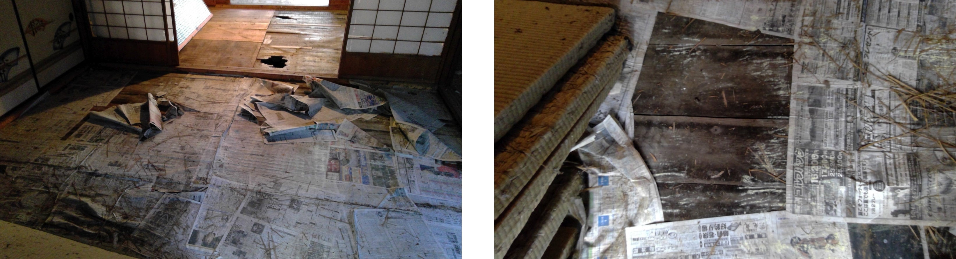 所有者である山際さんのご理解により、我々生活文化同人は令和 4 年度から借り受けることができることになりました。 しかし、大阪屋さんを活用するために調査を行ったところ大変!!天井は雨漏り、壁や土台は痛み、床はベコベコ、建具はハマって動きません!多くの課題が浮き彫りになりました。