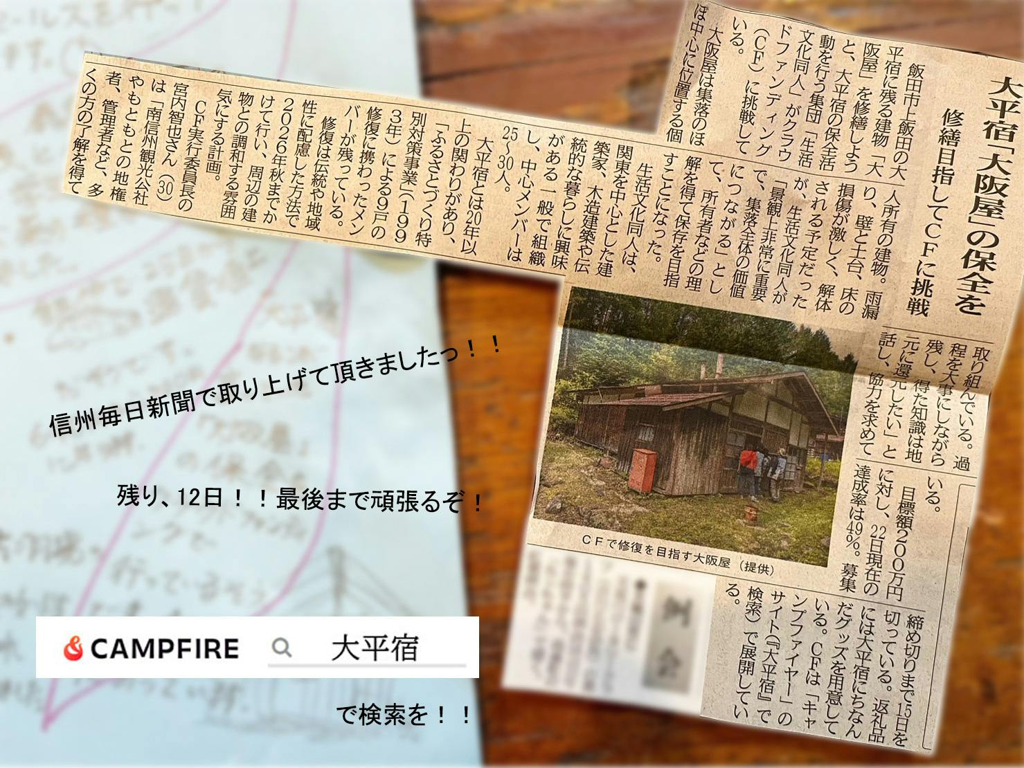 昨日付け、信州毎日新聞にて取り上げて頂きました!