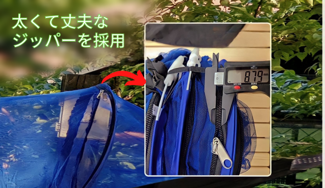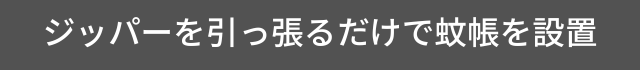 蚊帳はハンモック本体とつながっているので、 必要な時にジッパーを引っ張るだけだけでOK! 10秒で蚊帳を設置!