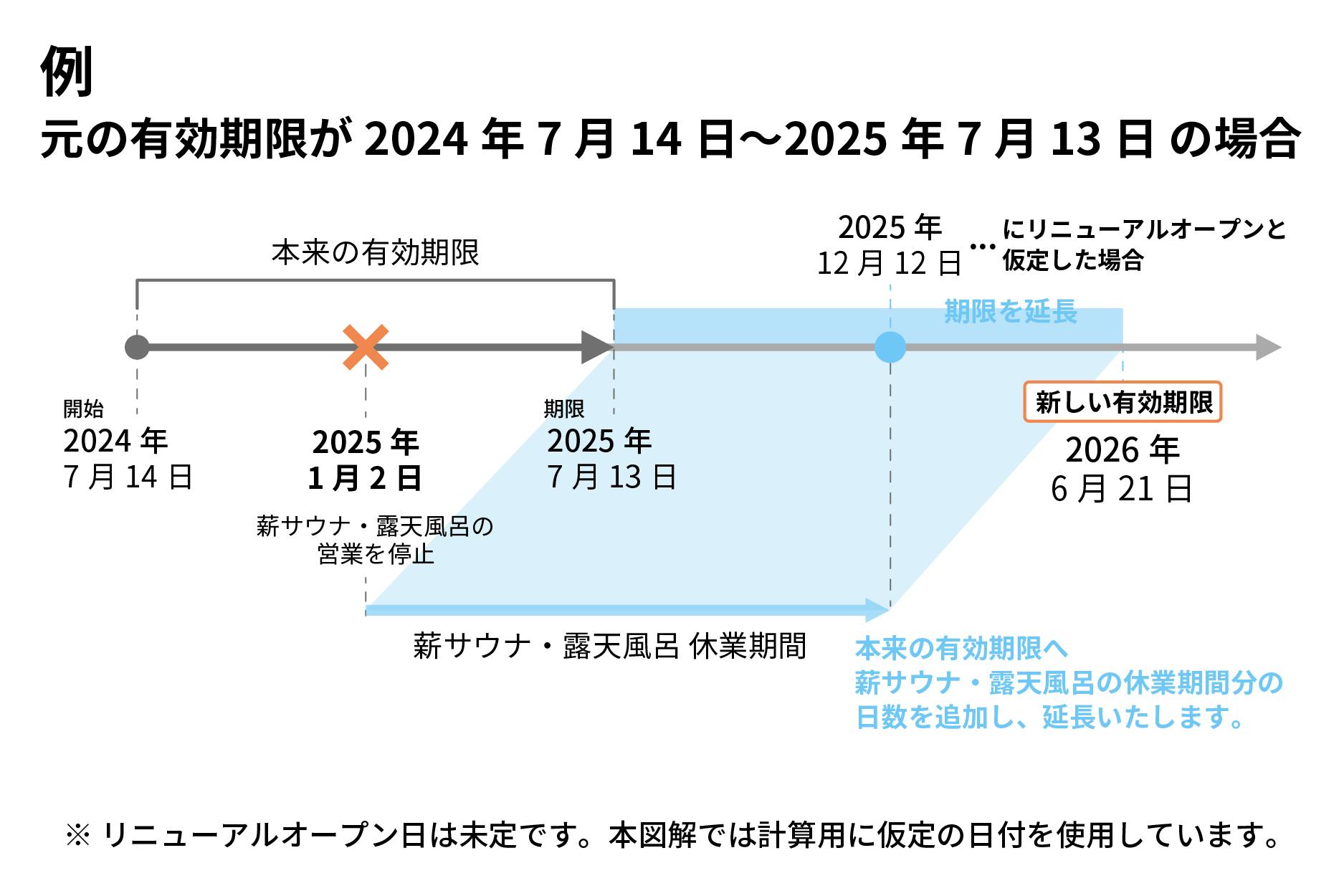 薪サウナ休業開始の 2025年1月2日 から リニューアルオープン前日 12月11日 までの、計343日分を延長