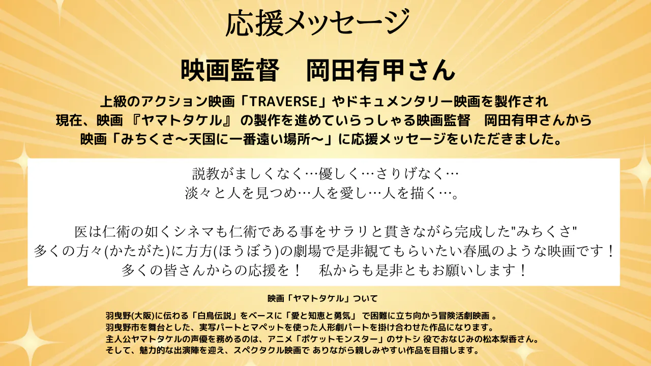 映画監督 岡田有甲さんから応援メッセージをいただきました。