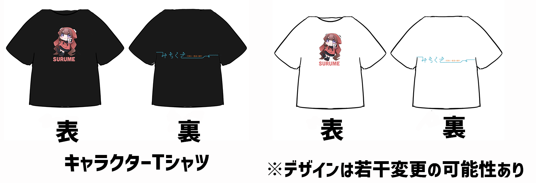 Tシャツは、「映画の登場人物 わこのキャラクターするめちゃんをモチーフにしたキャラクターTシャツ」、「タイトルロゴのTシャツ」の2種類、色も2種類ご用意しました!