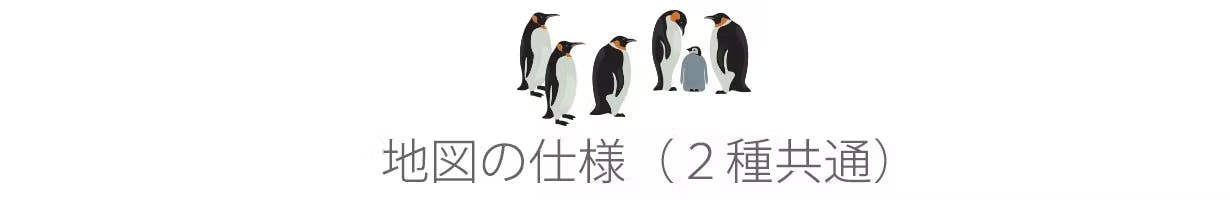 シロクマは北極のみで南極にはいません。逆にペンギンは南極のみに生息し、そのなかでも陸地で子育てをするのはアデリーペンギンとコウテイペンギンのみ。それらの様子もきちんとこの地図に表示されています。