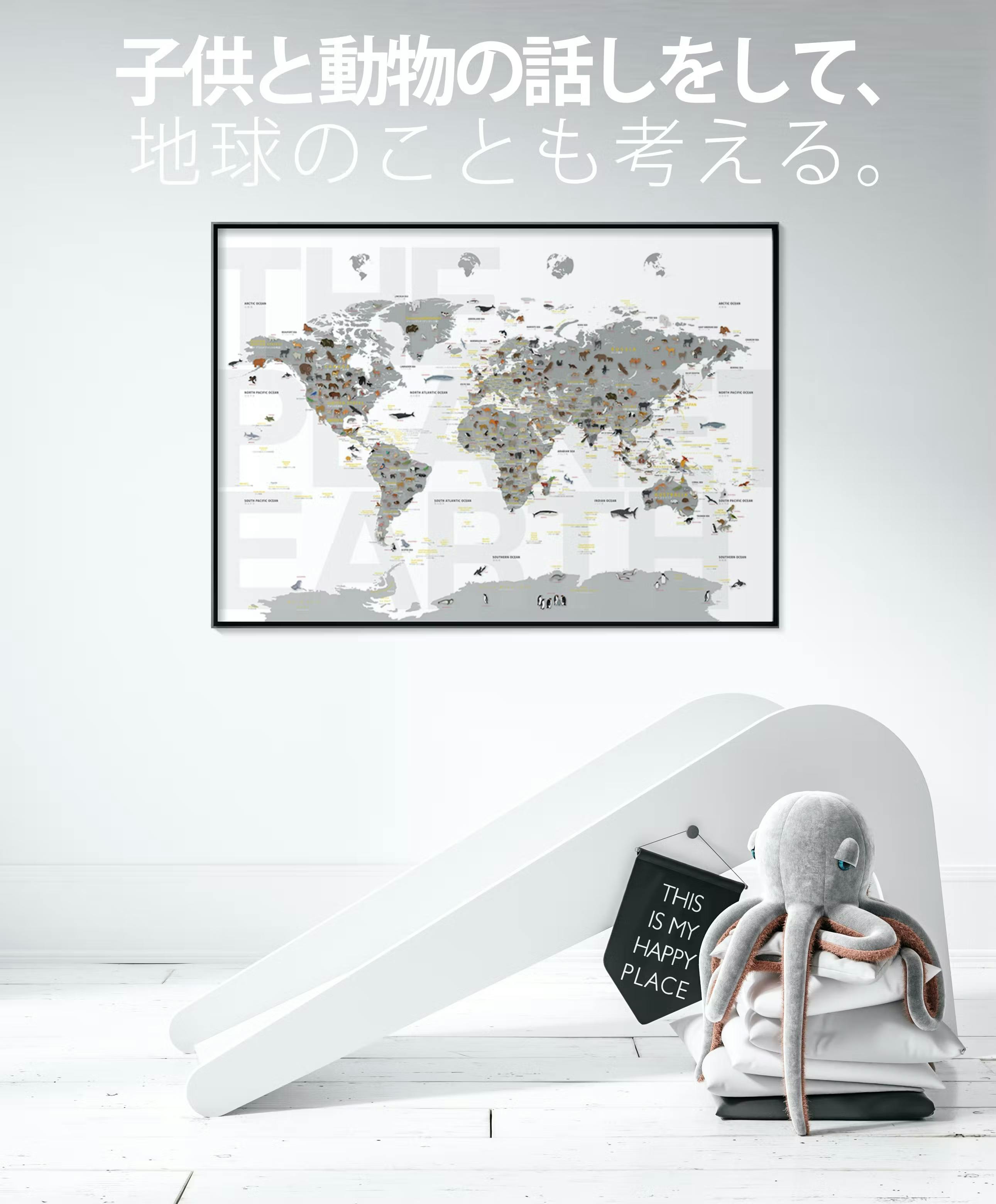 「どうぶつせかいちず」は、よいデザインと、フレンドリーな動物たちの姿で、おうち空間とみんなの気持ちをポジティブにしてくれます。