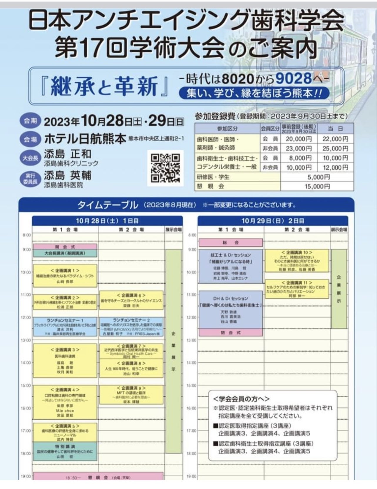 10月28日29日熊本で第17回日本アンチエイジング歯科学会が開催されます。