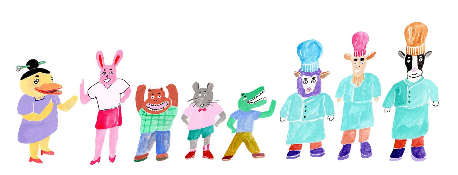 登場人物から考えました。子どもたちの好きな動物をモチーフに、楽しいキャラクター設定に。