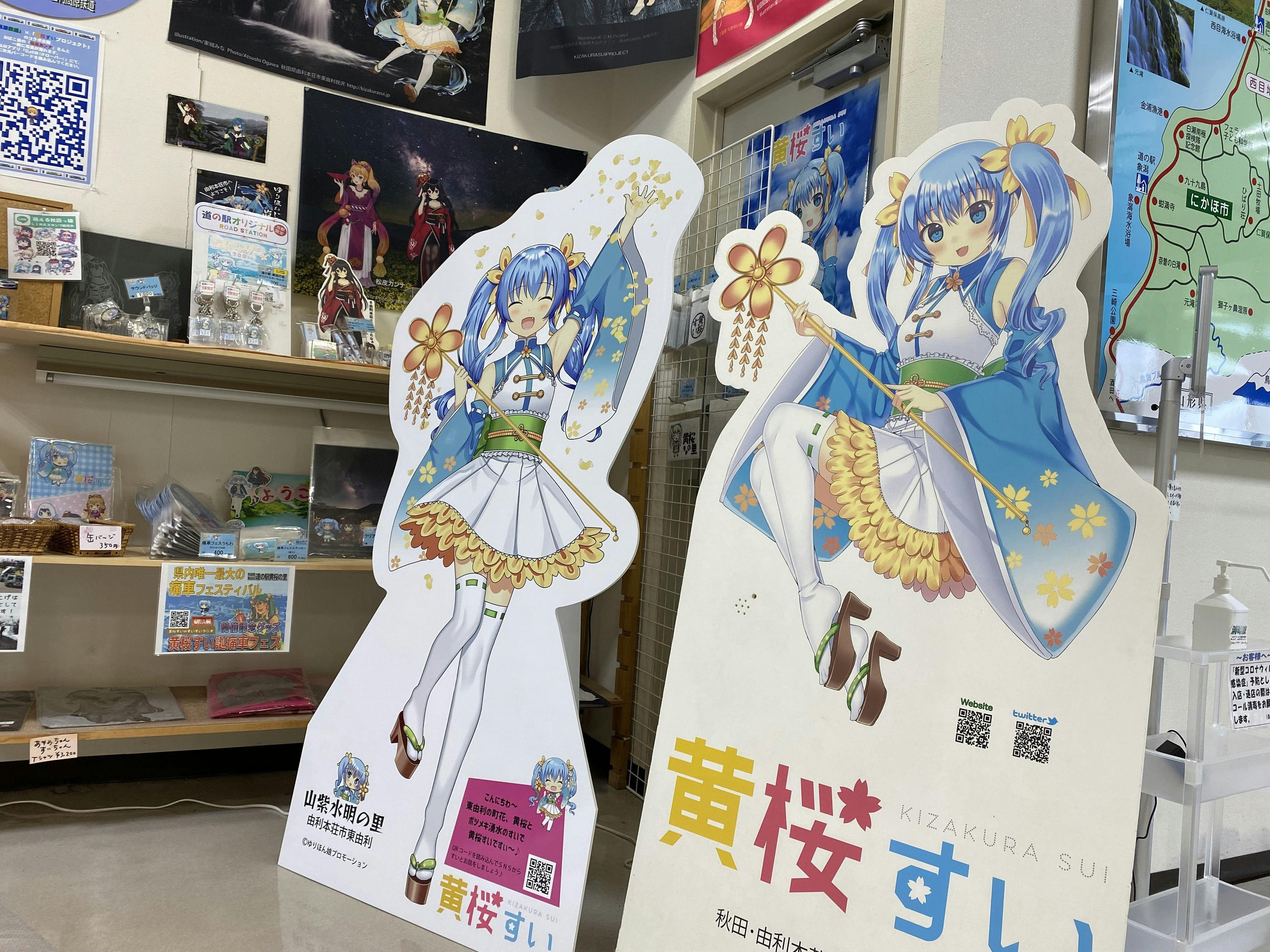 道の駅東由利のショッピングプラザぷれっそさんに設置していた黄桜すい等身大パネルを第2目標達成によりリニューアルすることができました!