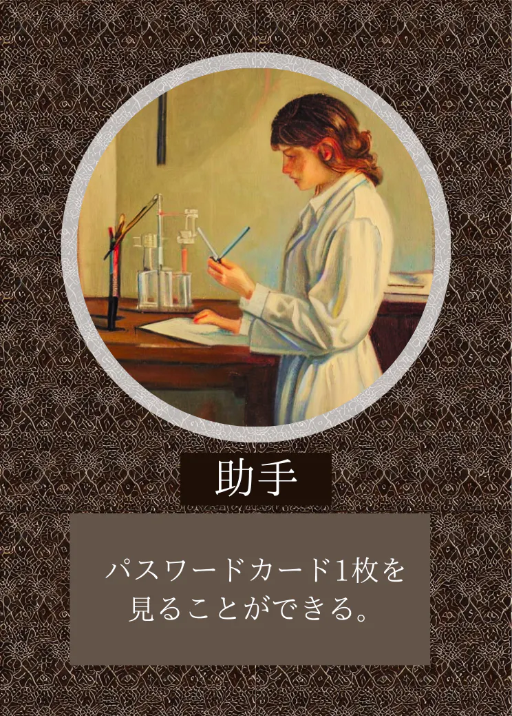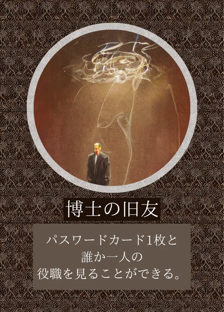 能力:プレイヤーのうち誰か1人の役職とカード1枚を見ることができる。