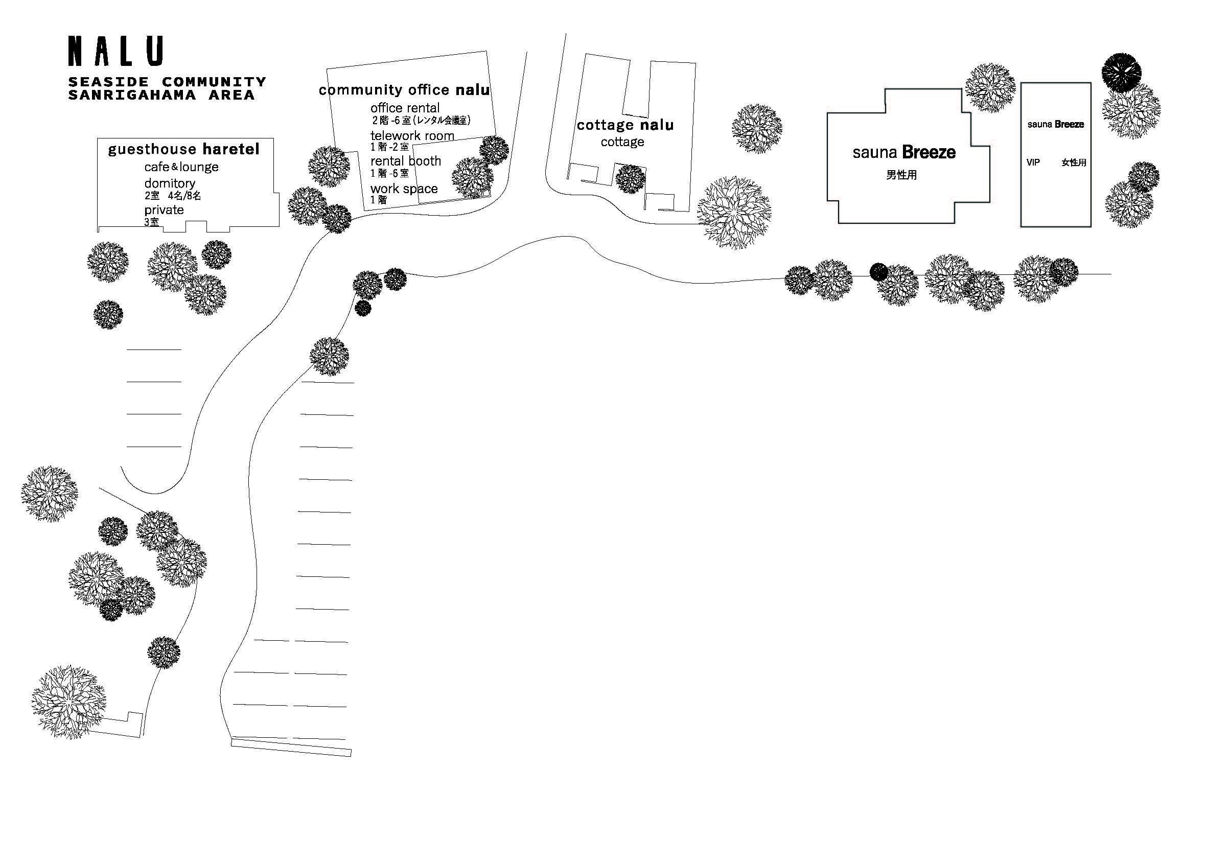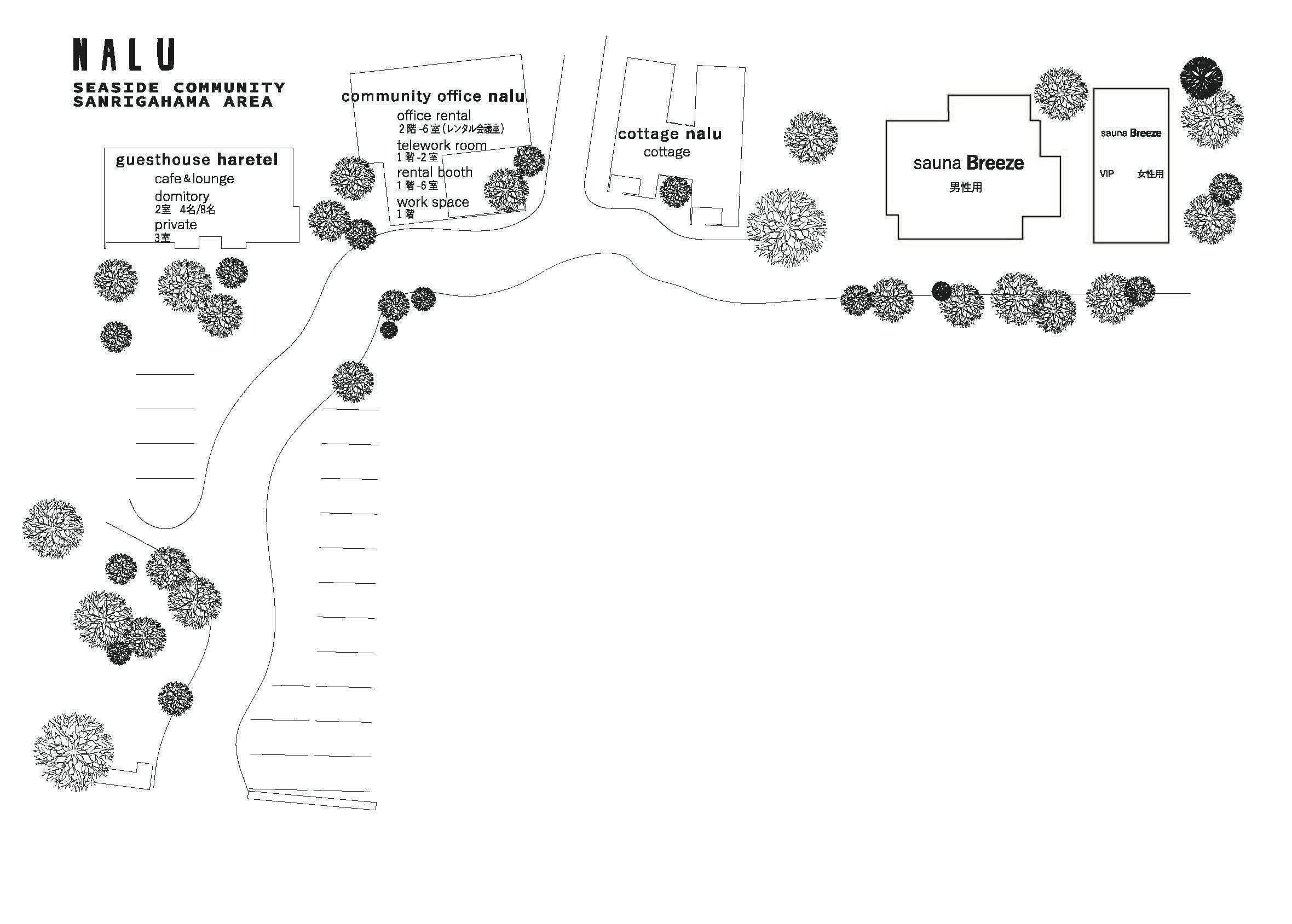 今回、私たちはゲストハウス&カフェ「haretel(ハレテル)」、ワーケーションでゆったりと過ごせる複合型レンタル・シェアオフィス「NALU(ナル)」、完全プライベート一棟貸しコテージ「Nil」「Noi」そして今回新しく誕生するサウナ施設「sauna Breeze」による連携した事業展開を通じて、益田に訪れる皆様に楽しんでいただけるようにと計画を進めてまいりました。利用者の皆様にゆっくりとした時間をお過ごしいただき、この場所で得られる価値を提供するとともに、その先には民間事業所の連携による地域振興、あるいは地域の経済的発展に寄与できるものと考えております。この場所を「 NALU SEASIDE COMMUNITY SANRIGAHAMA 」と名付け皆様とともに育むエリアを目指します。