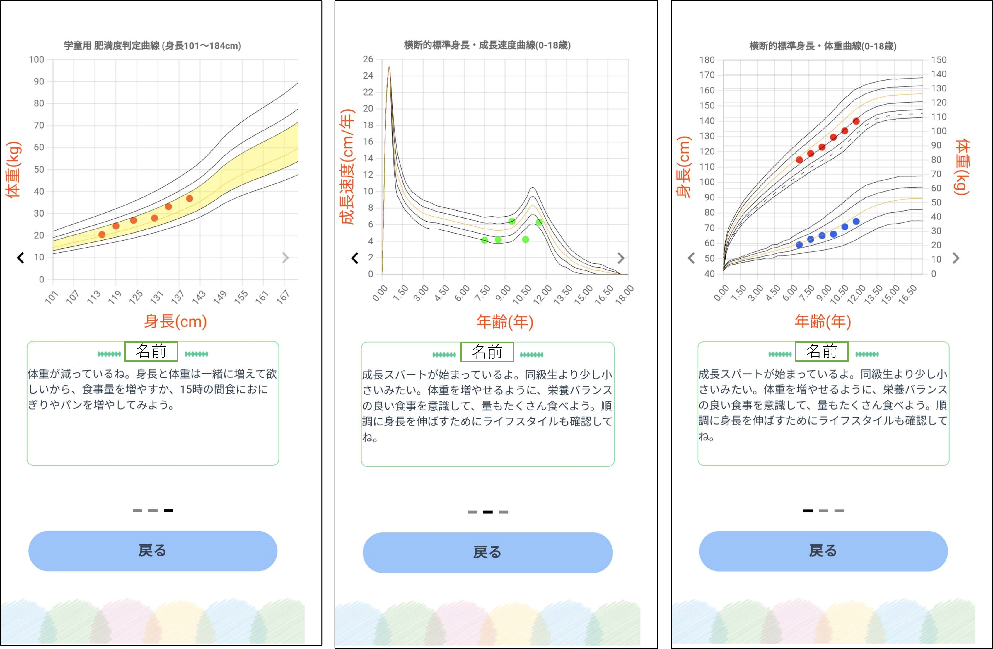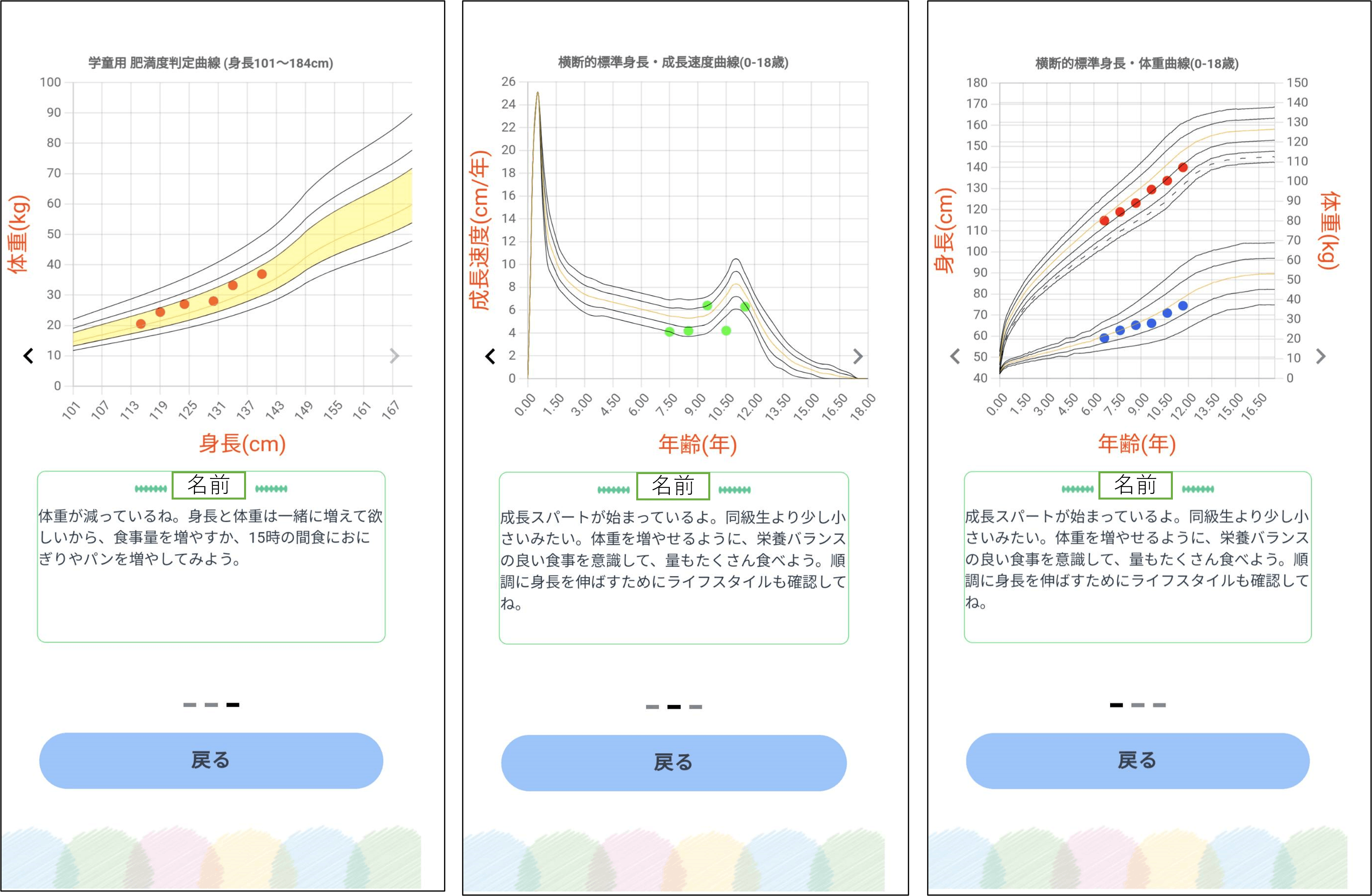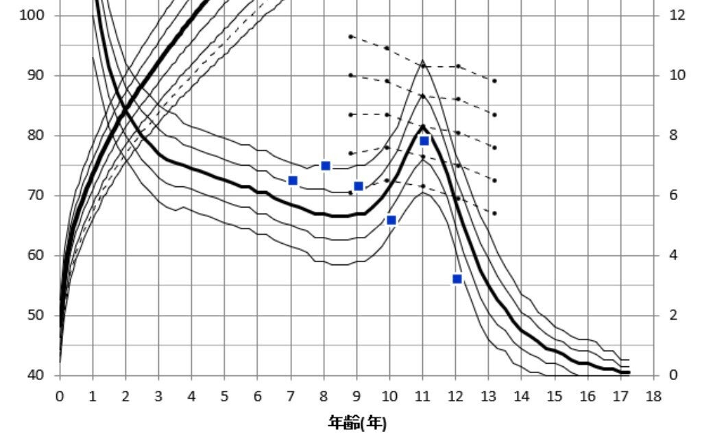 ①身長から成長速度曲線を作成し、成長スパートを把握できます