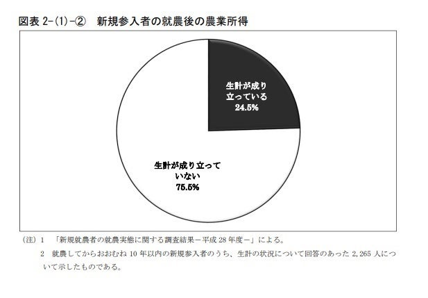 新規参入者のうち、「生計が成り立っていない」と答えた人の割合は4分の3以上。