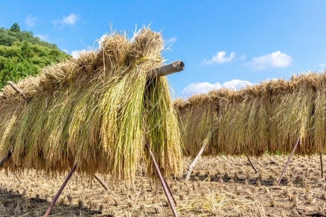 昔は主に”天日干し”で籾を乾かし、木の棒などで叩いて、お米を取り出していました。