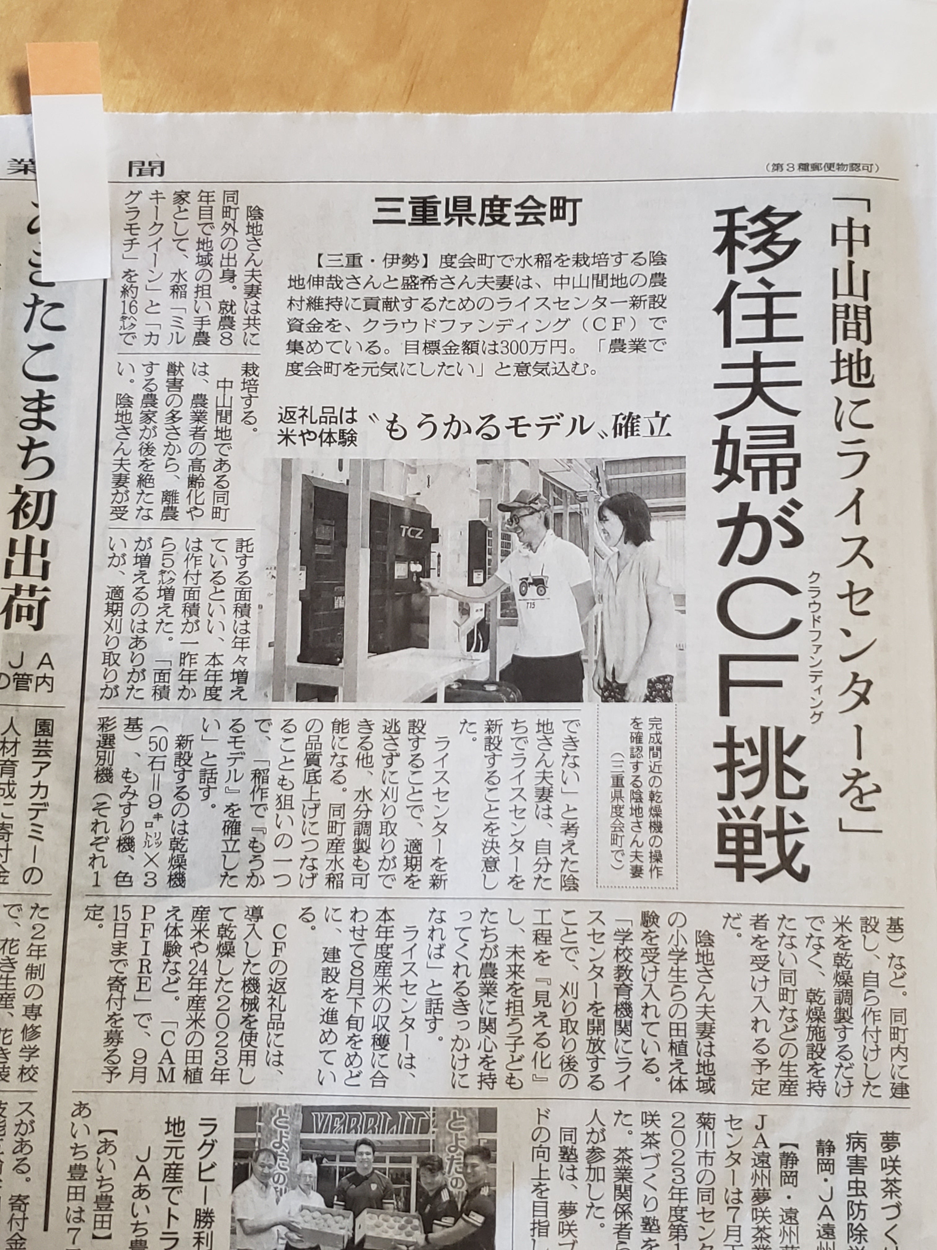 「【三重県度会町】 米づくりの存続危機!ライスセンター新設で農村を未来へ繋げる」プロジェクト