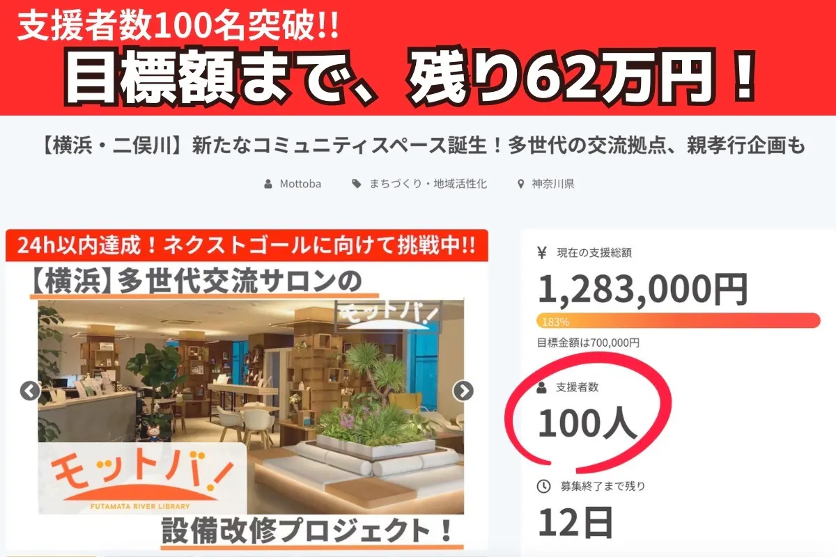 支援者数:100名の皆さま!!