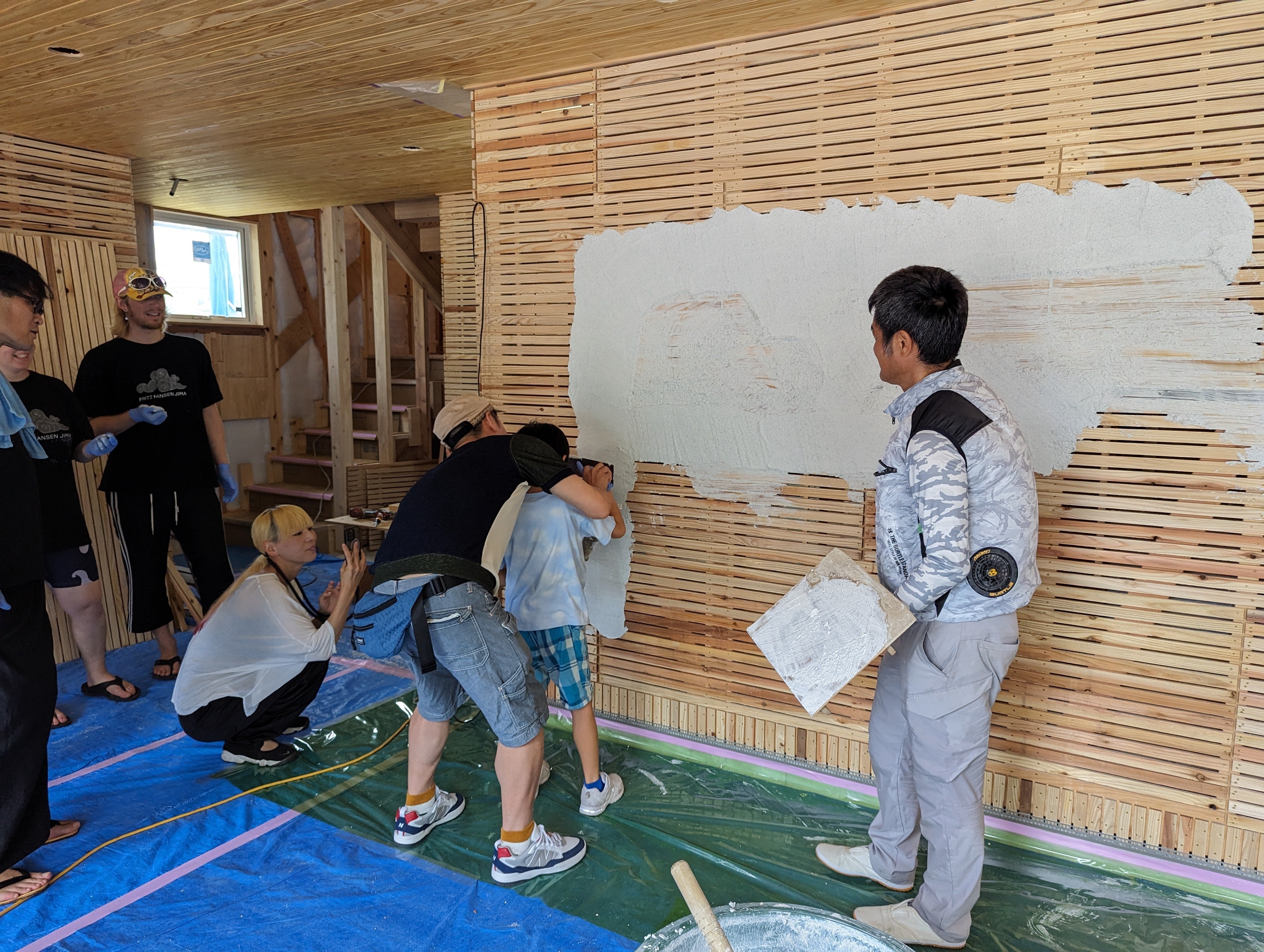 みんなが塗った瀬戸漆喰は、後ほど職人さんが手直ししてくれるようです。