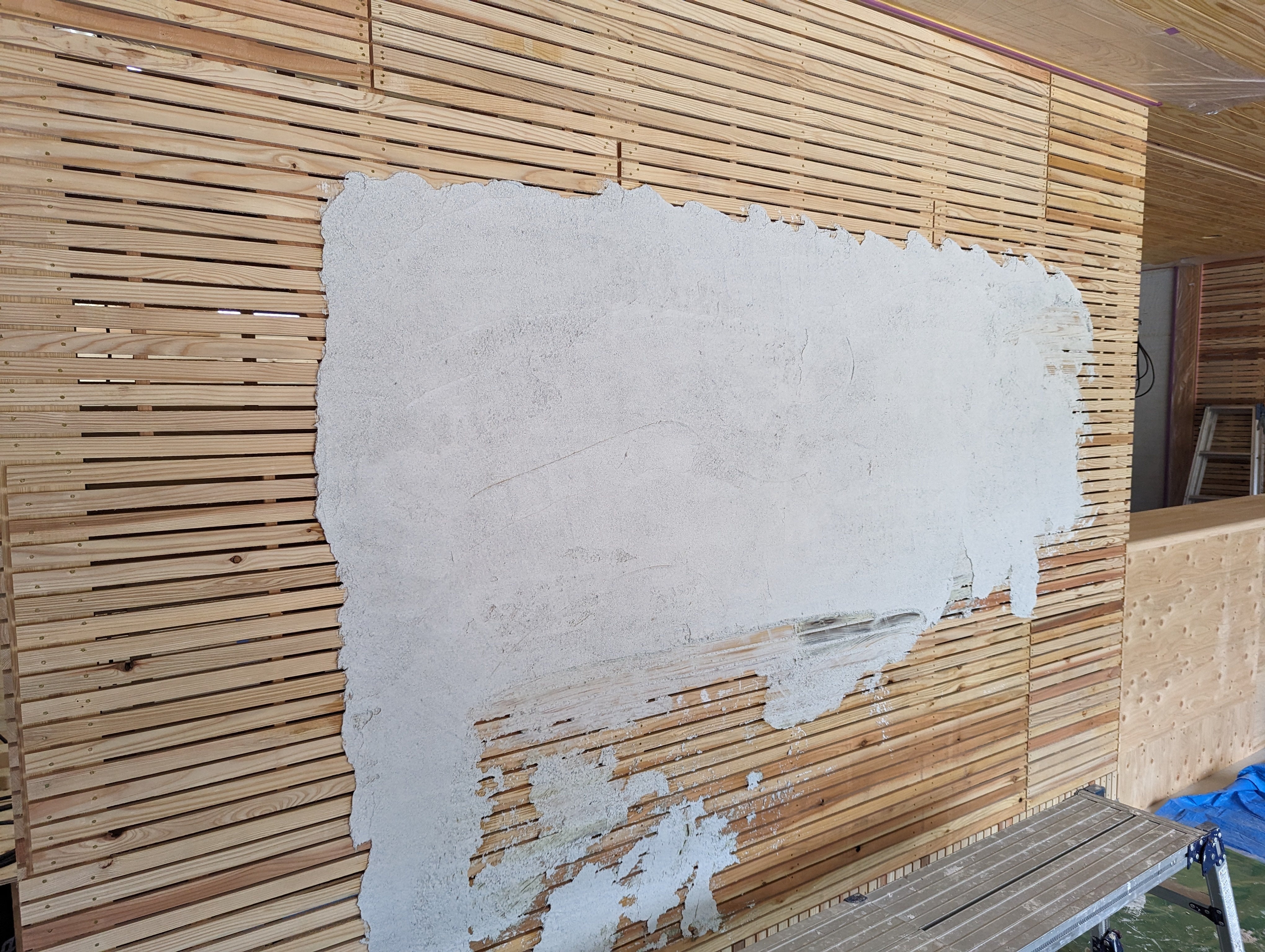 瀬戸漆喰は2回塗りで、毎回2週間ほど乾かすので完成は9月下旬になりそうです。