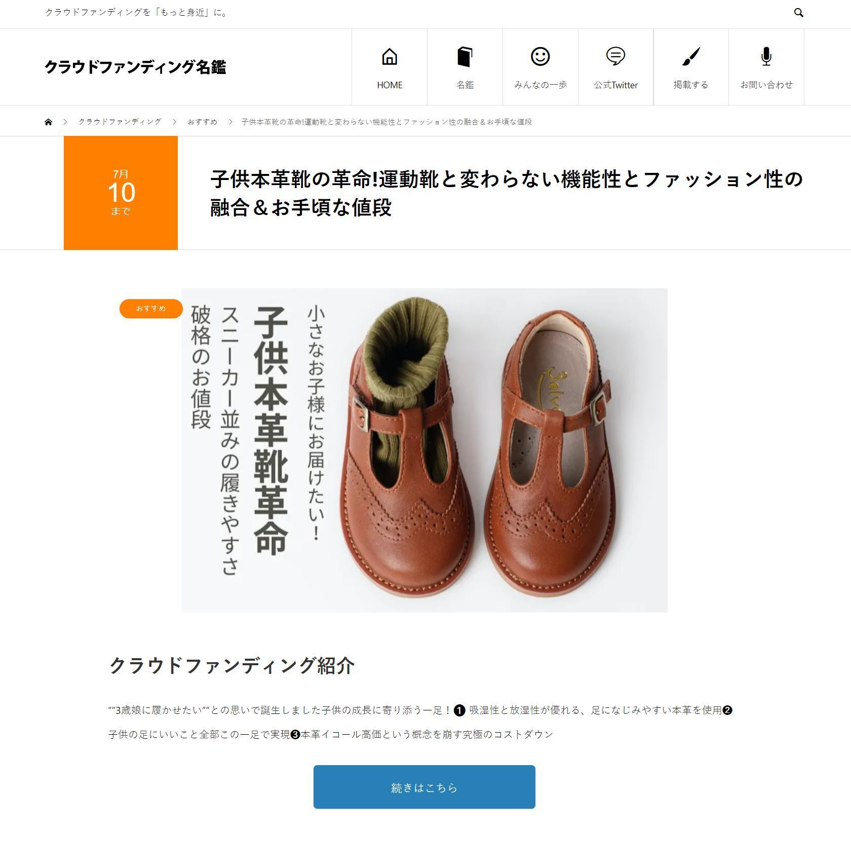 2023/05/18 20:00本日はクラウドファンディングの開始2日目となりました。プロジェクトをスタートするにあたり、ドキドキしながら進めておりましたが、すでに応援していただいた方々がいらっしゃって、本当に嬉しい!感謝の限りです!それに、早速ですが、優れたプロジェクトを紹介する「クラウドファンディング名鑑」に掲載されました! ↓↓↓https://crowdfunding.meikan.org/project/campfire-666096/クラウドファンディング名鑑って知っていますか?クラウドファンディングに"ボーダレス"な出会いを。をキャッチフレーズに支援者と実行者の新たな出会いを応援してくれるというありがたいメディアさんです。https://crowdfunding.meikan.org/皆様の期待に応えるべく、引き続き良い商品の開発を精一杯頑張ります!お子様が可愛く履きやすい本革靴を履いて、走り回って笑っている姿を、ぜひ見届けたいです!引き続き、応援のほう、よろしくお願いいたします!! もっと見る