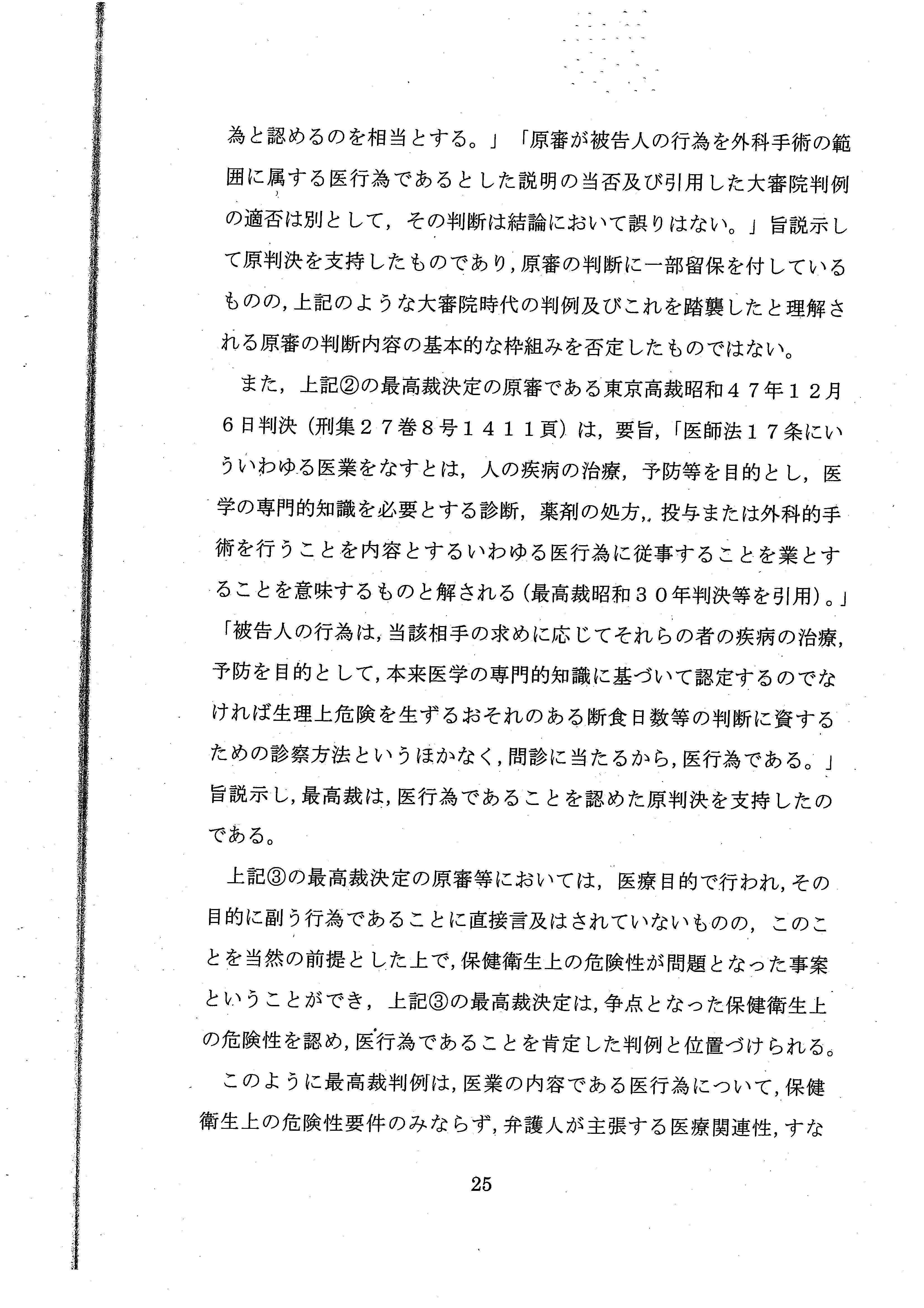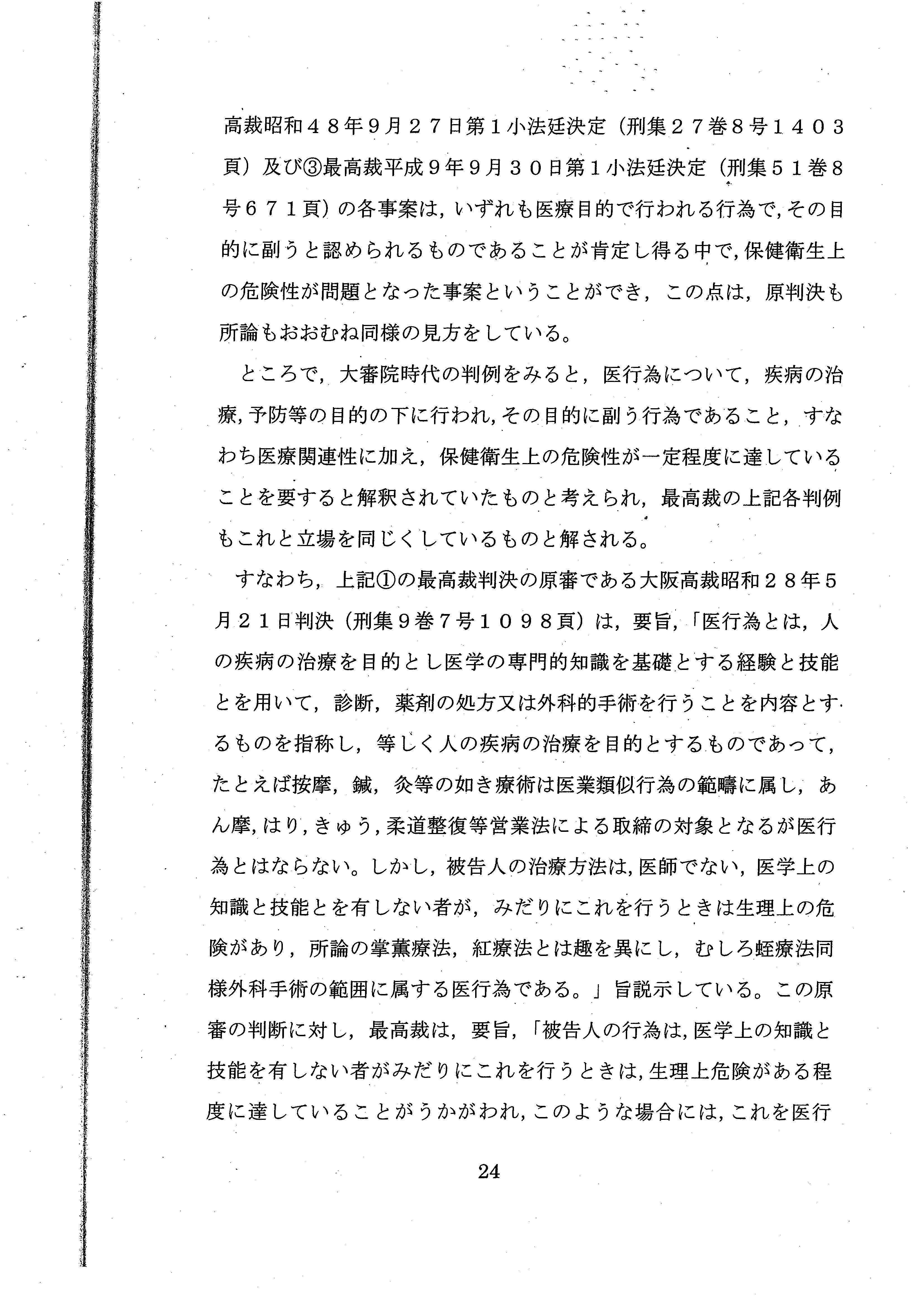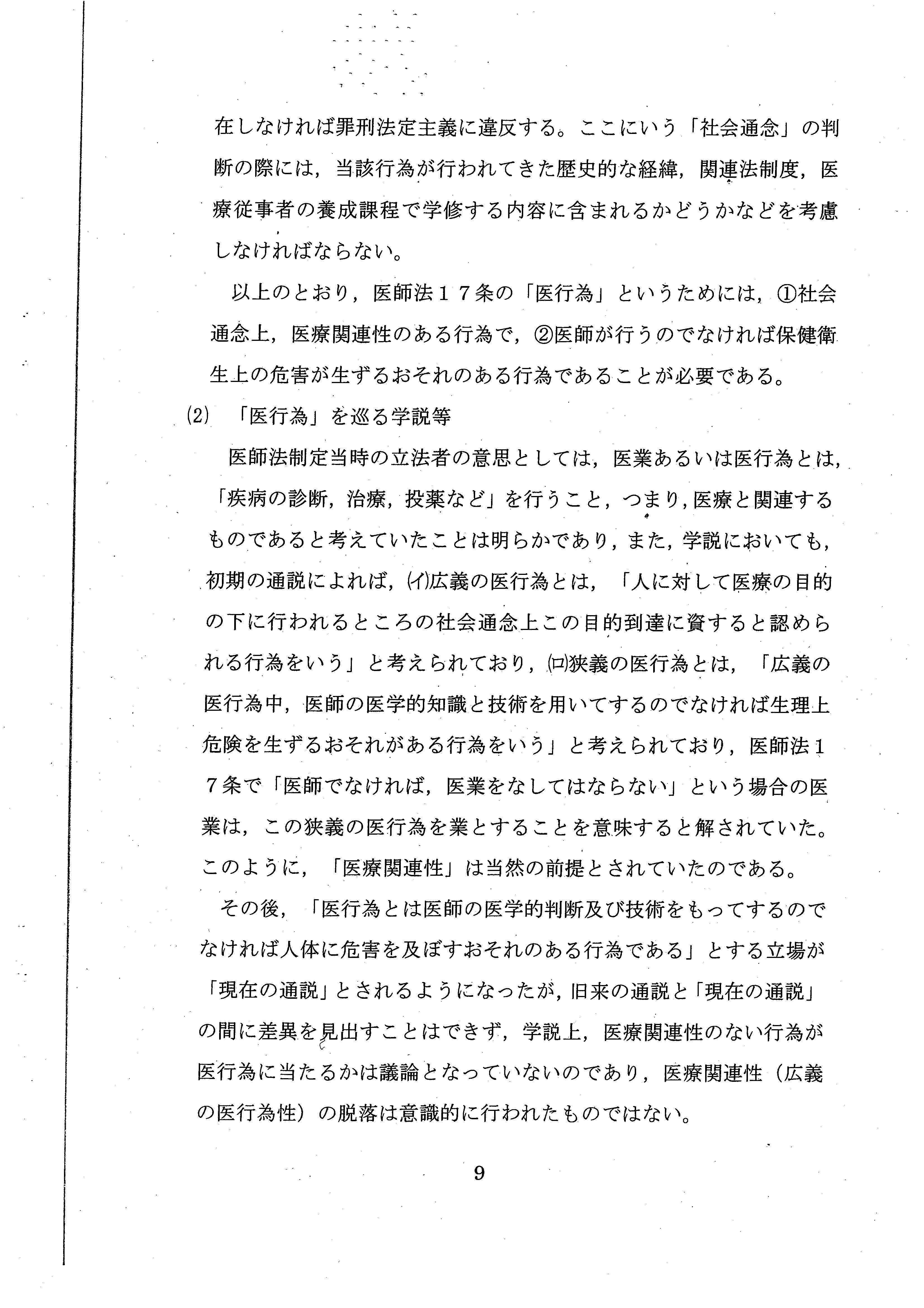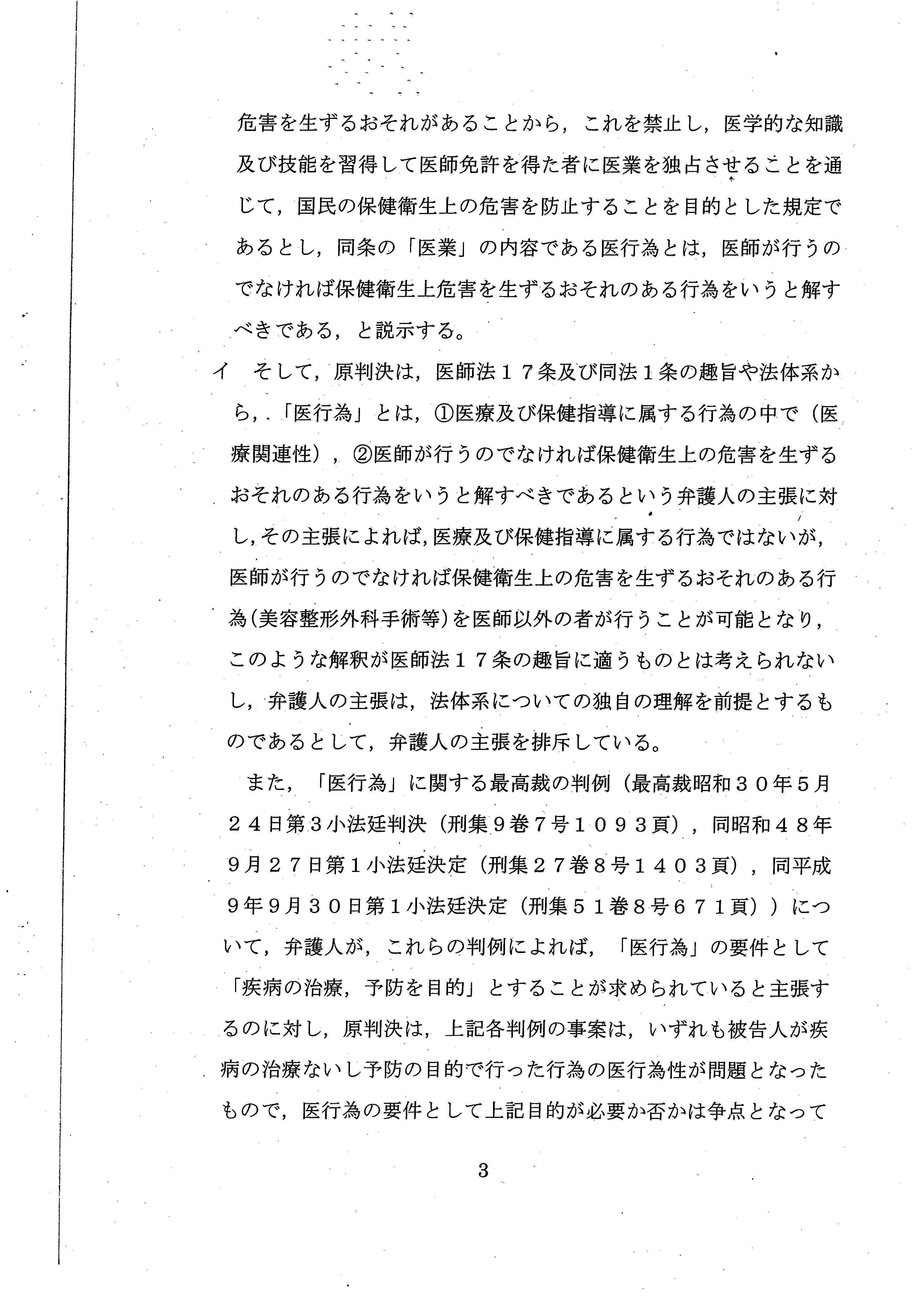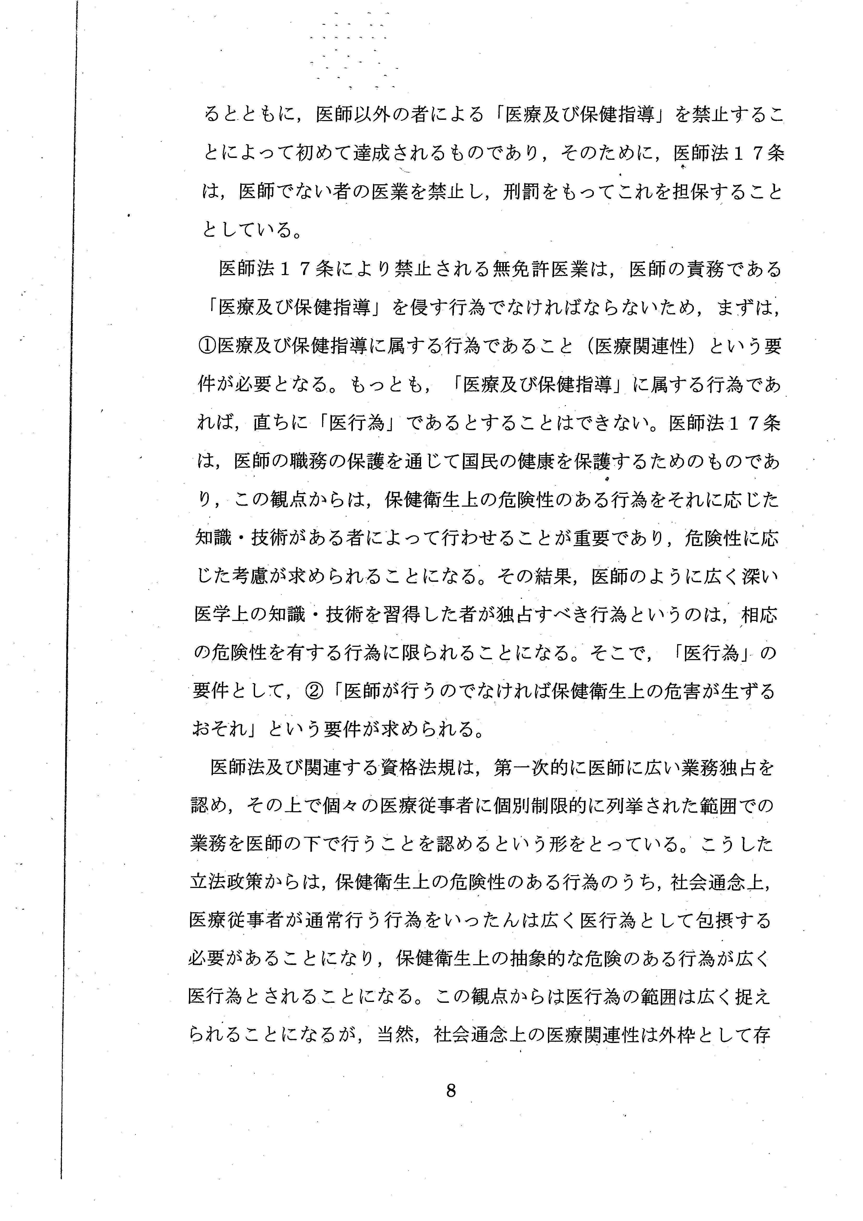医師法17条の解釈だけで結論を出すことができたにもかかわらず、あえて、憲法上の職業選択の自由について言及しており、実質的な「違憲判決」といえるような内容でした。