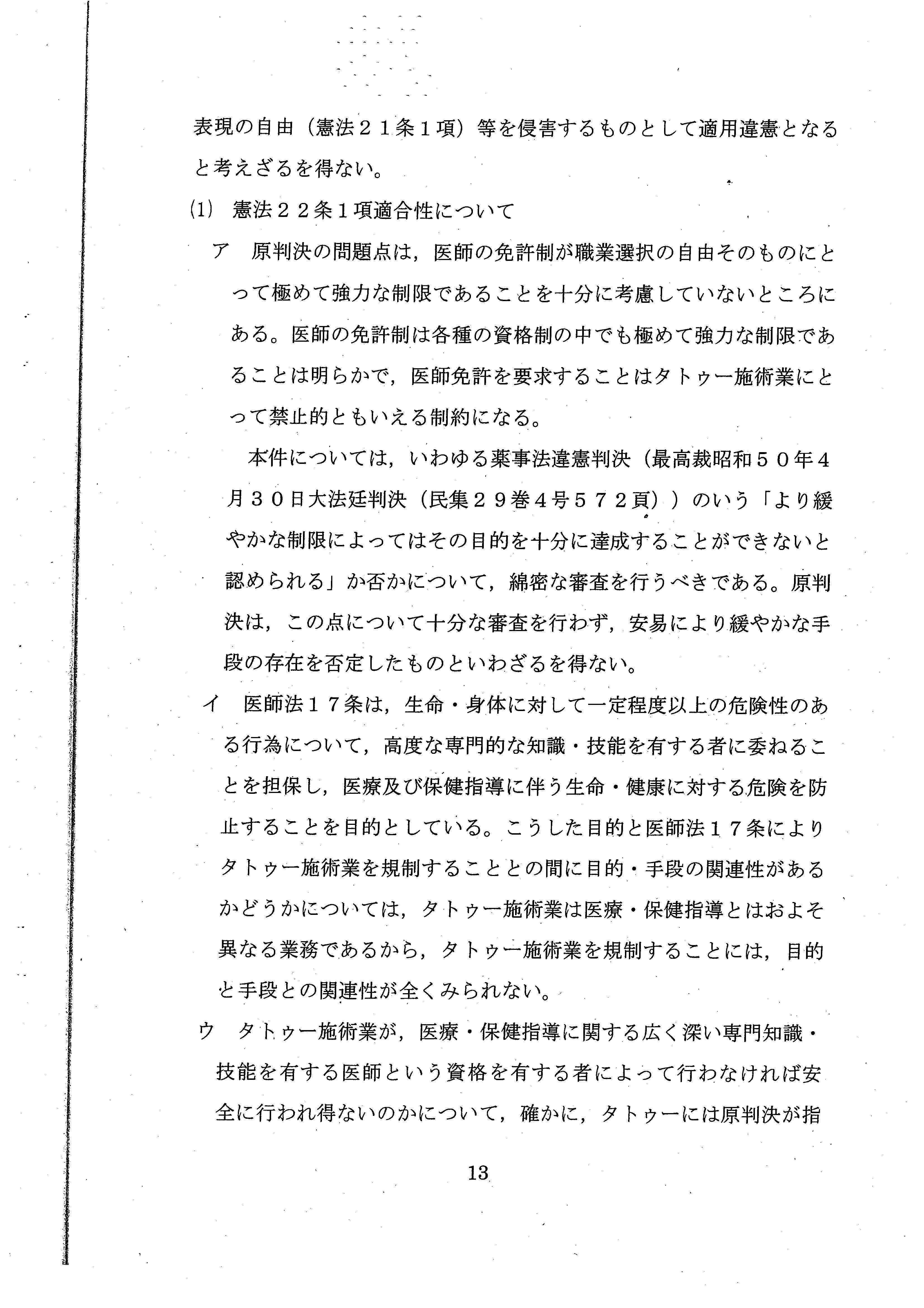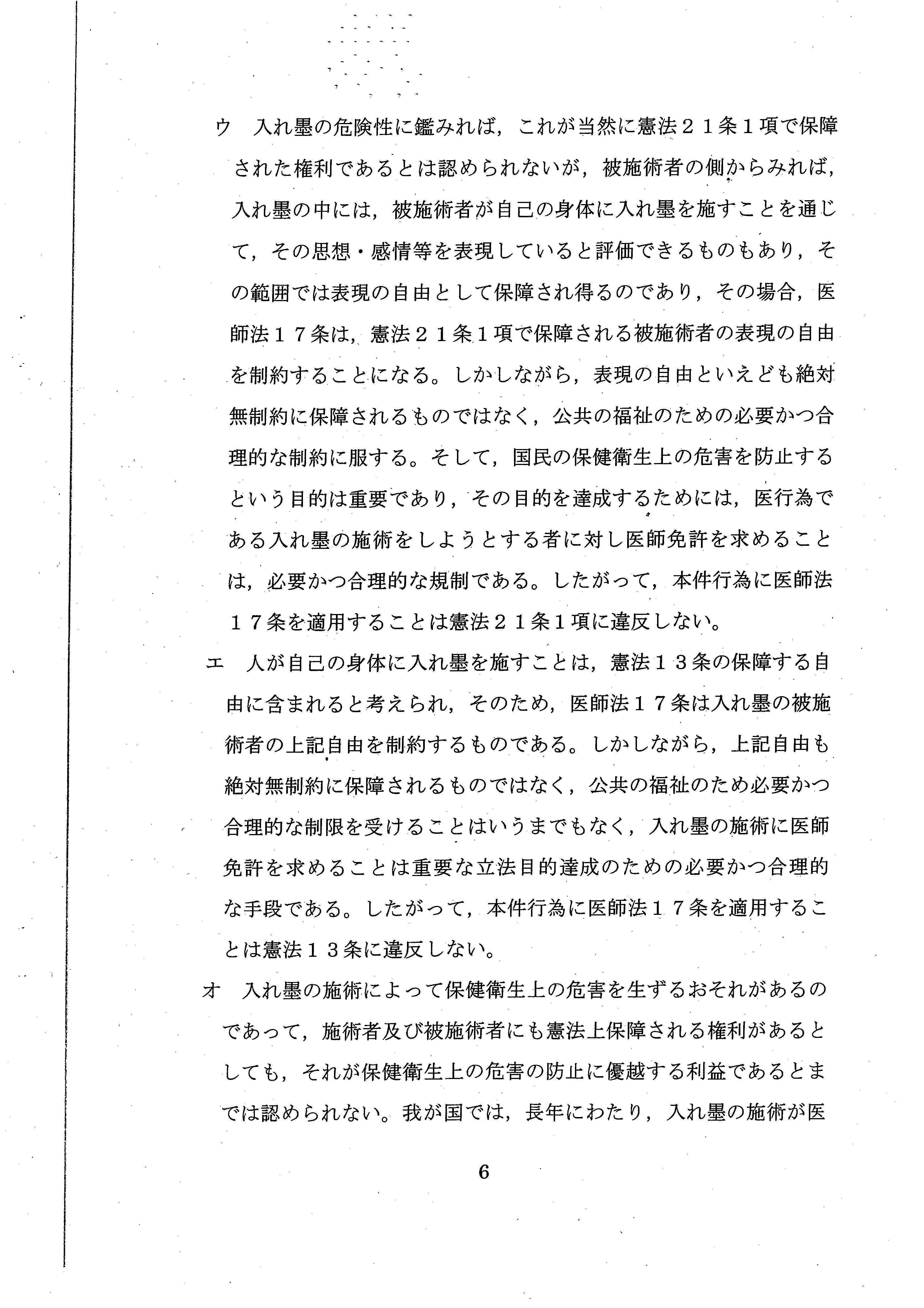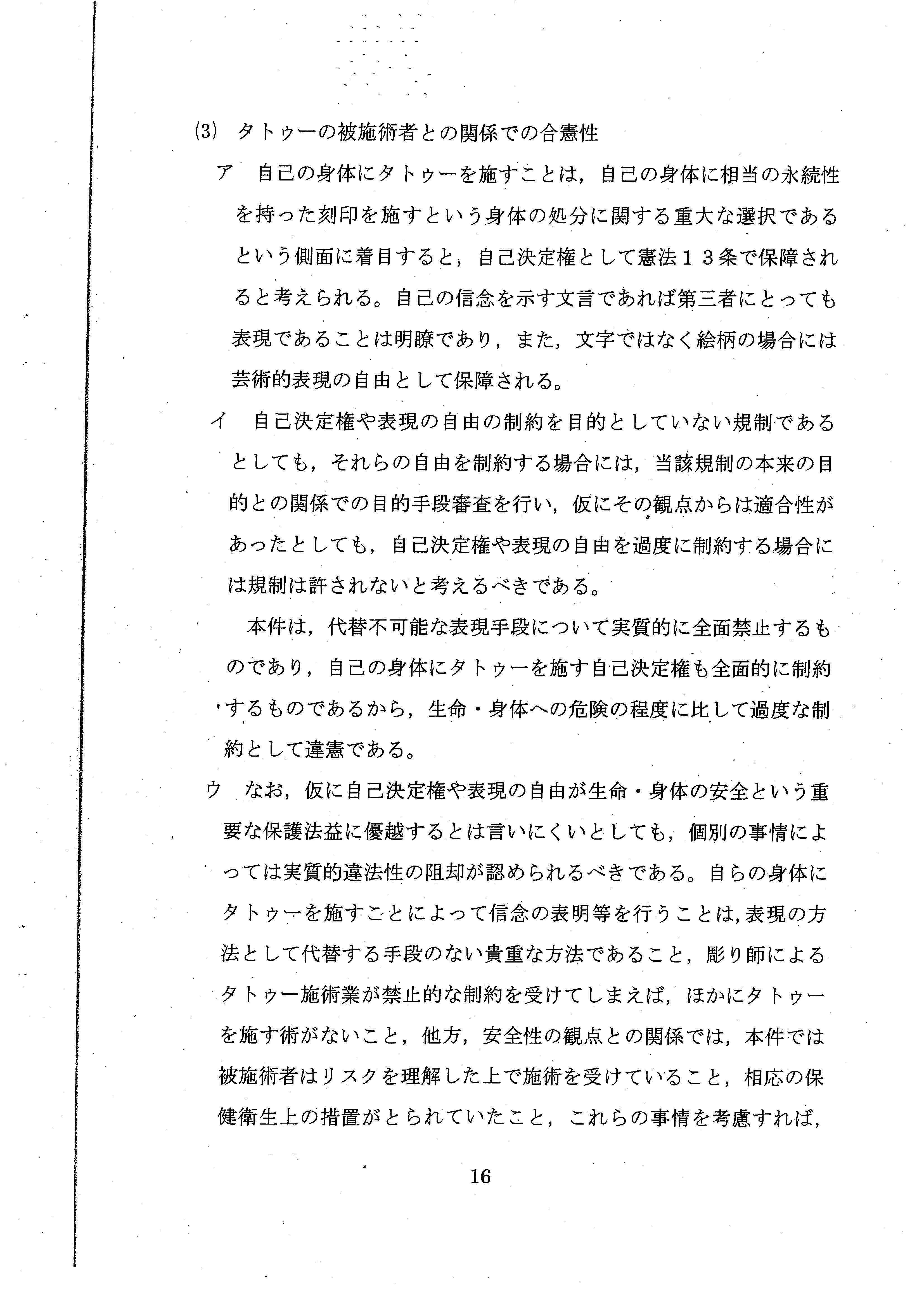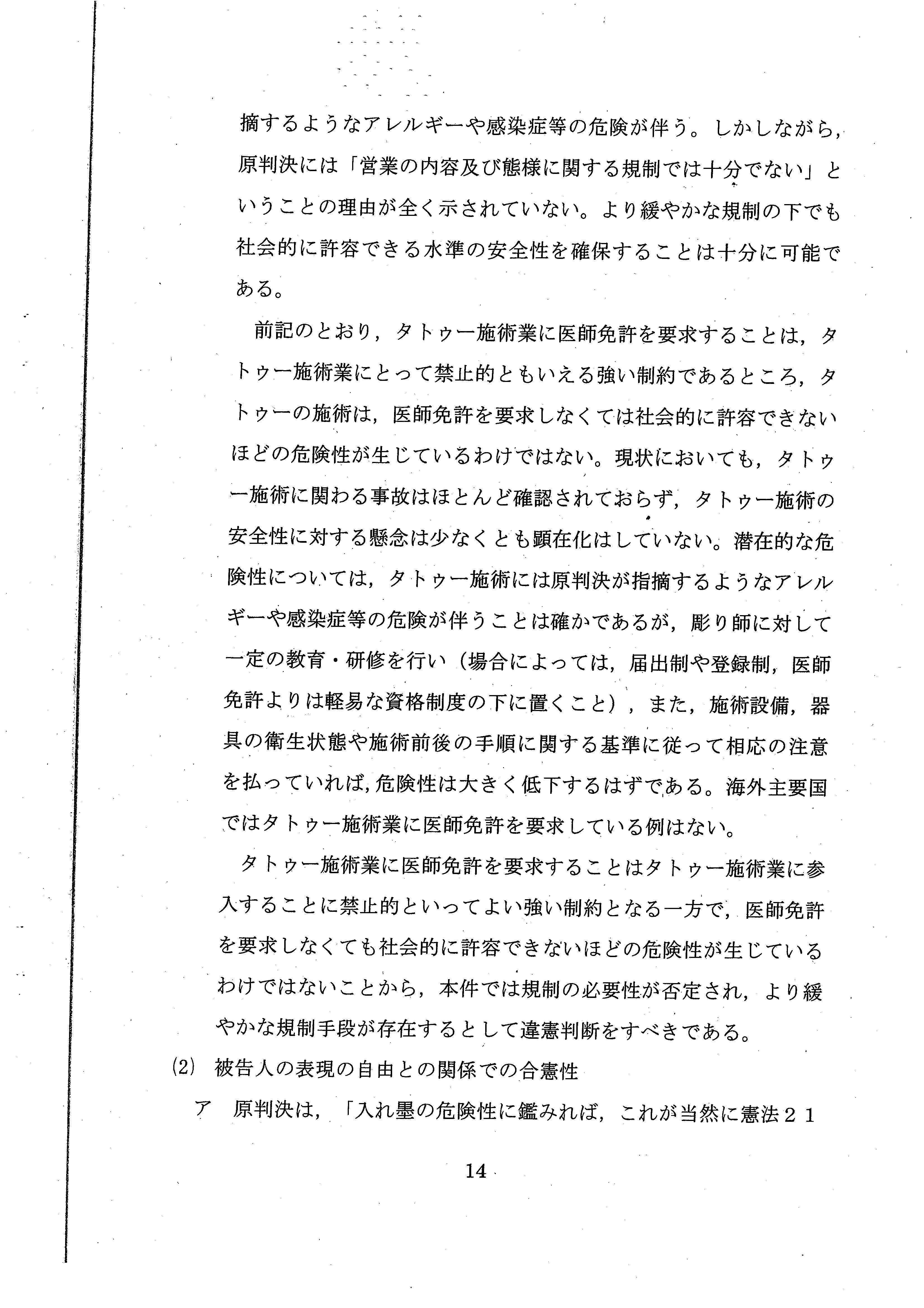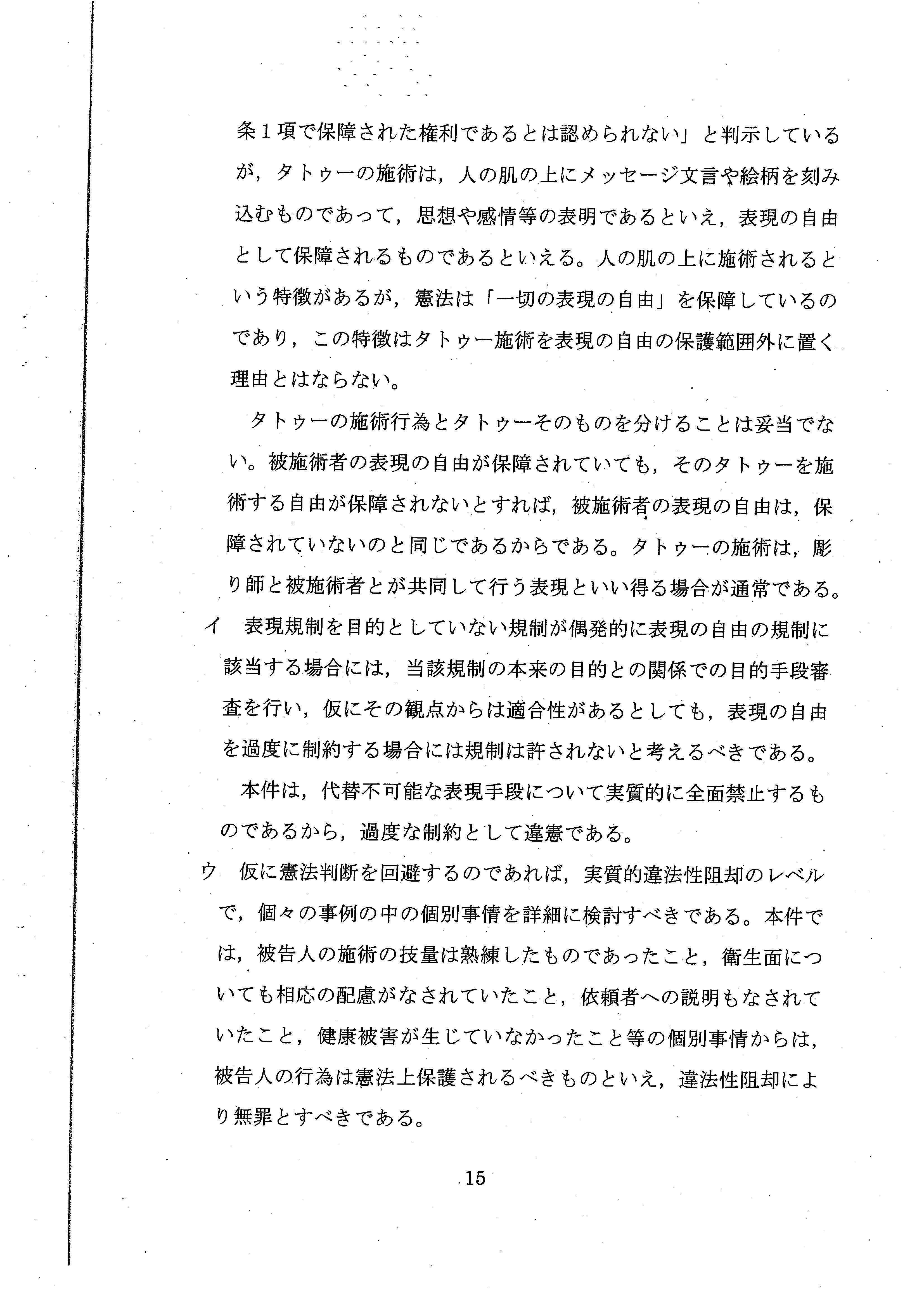 と述べ、彫り師に医師免許を要求することは、憲法違反の疑いがあるとまで言ってくれたのです。