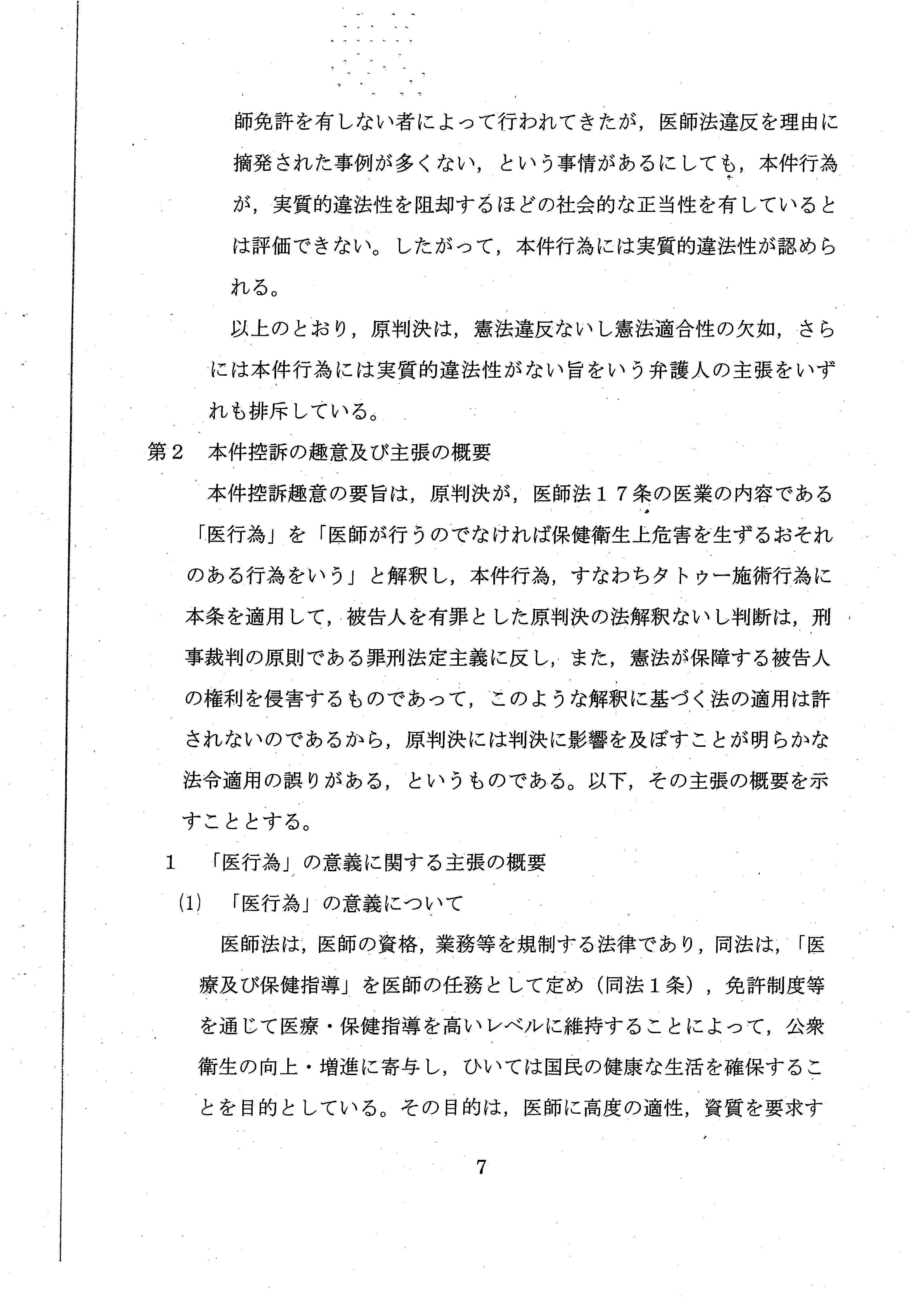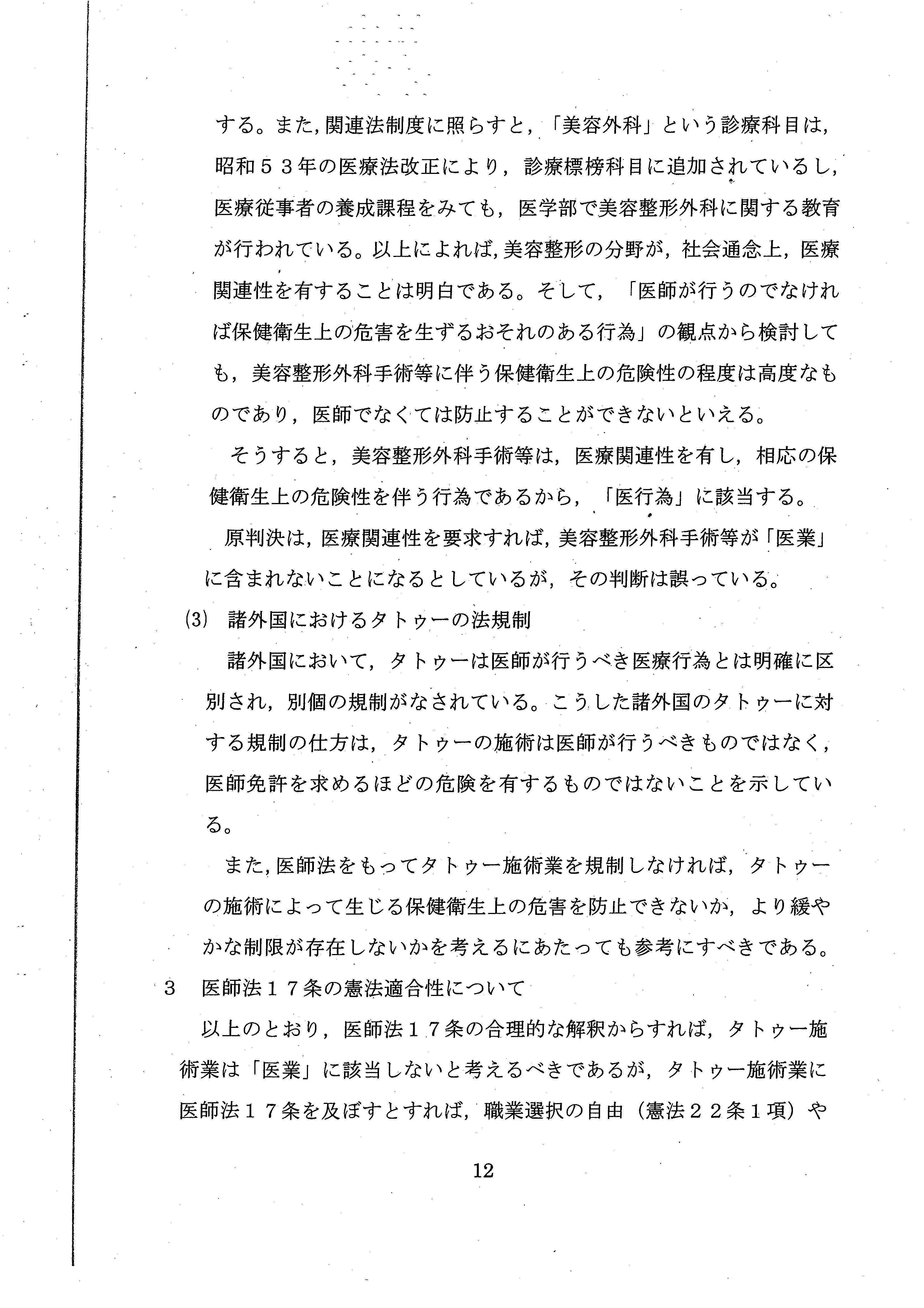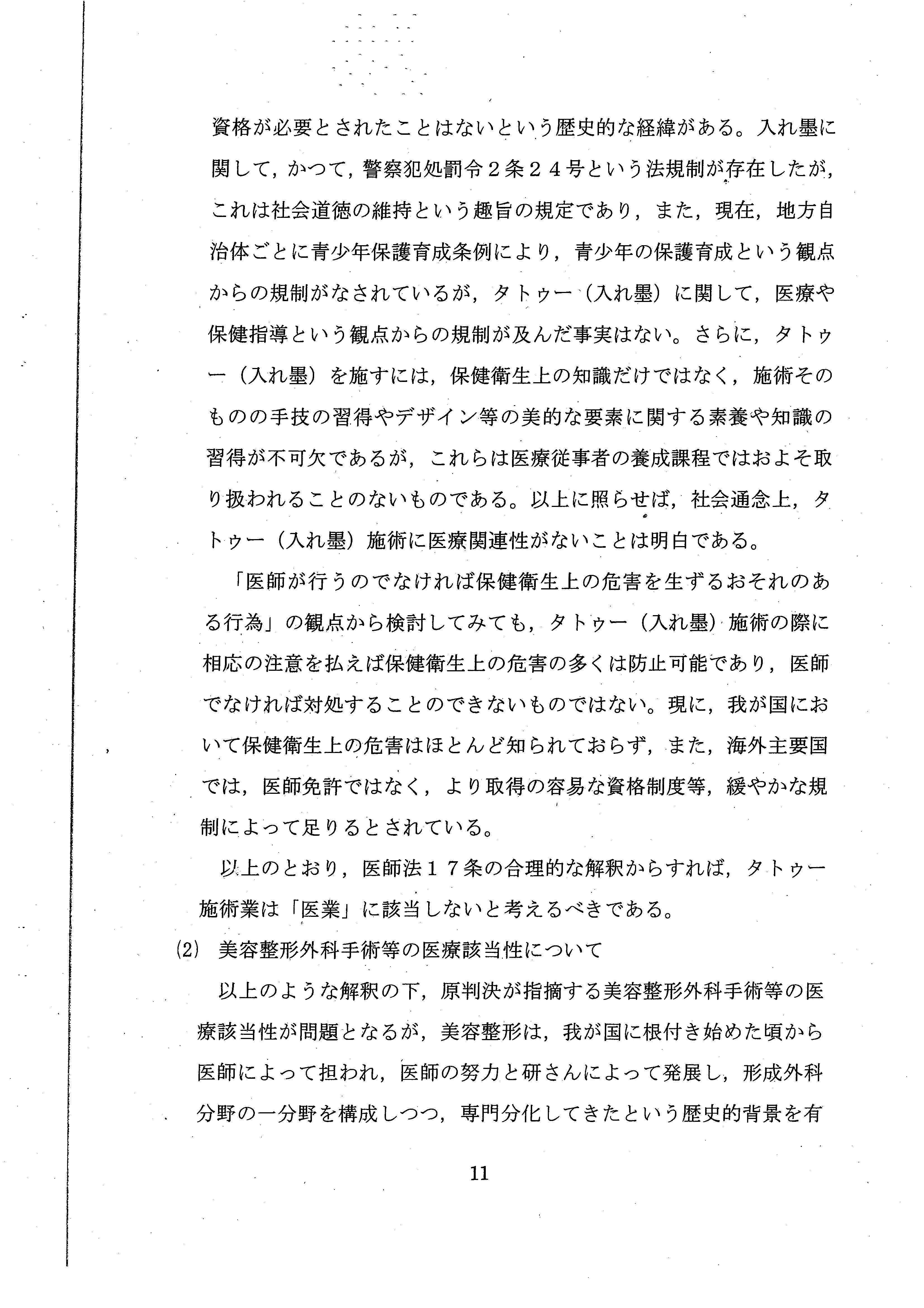 「タトゥーの施術において求められる本質的な内容は、その施術の技術や、美的センス、デザイン素養などの習得であり、医学的知識及び技能を基本とする医療従事者の担う業務とは根本的に異なっている」