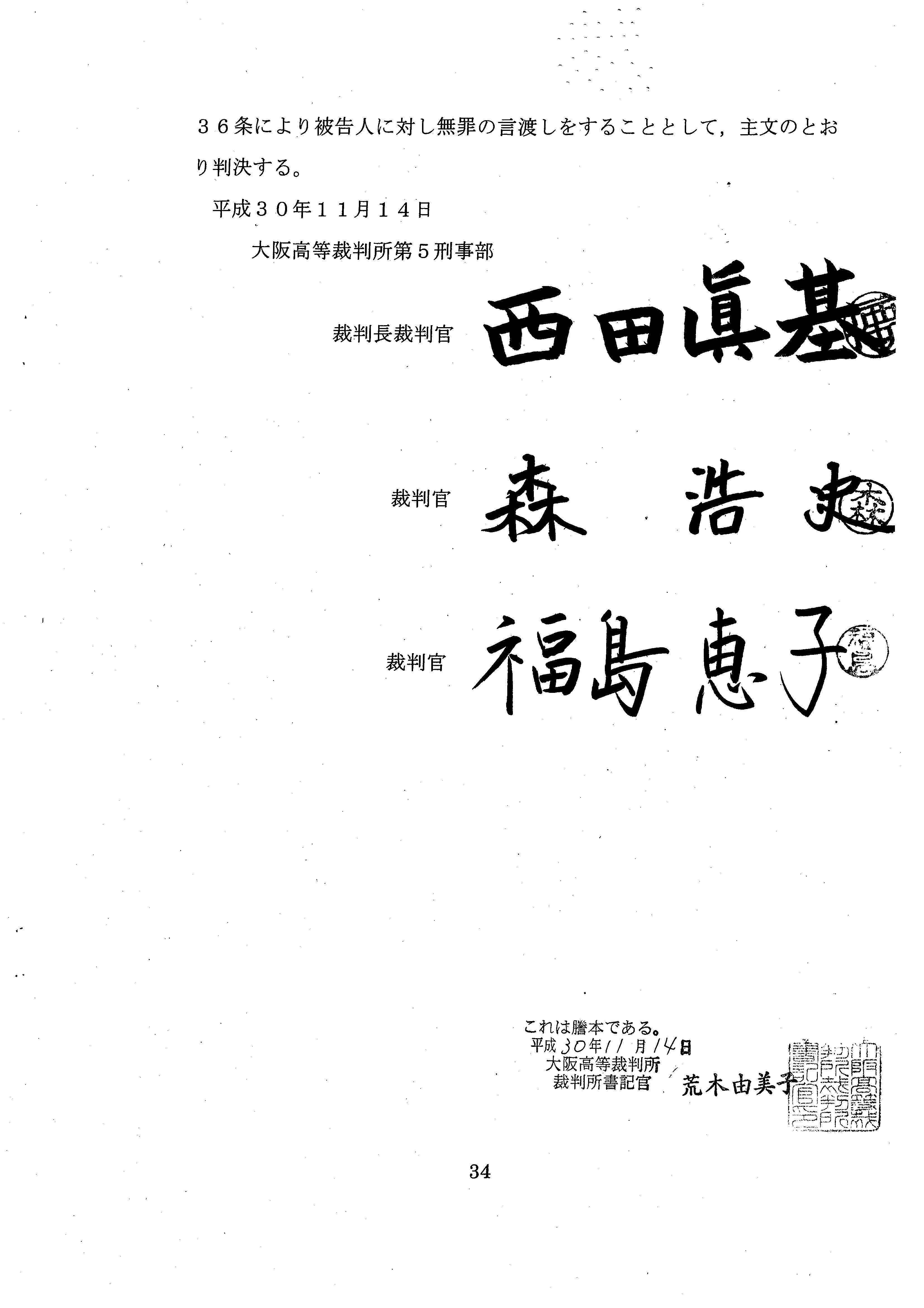 昨日、大阪高裁第5刑事部は、増田太輝氏を有罪とした一審判決を破棄し、逆転無罪判決を言渡しました!