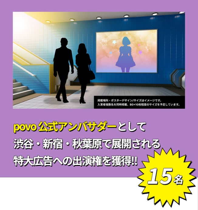 ② povo公式アンバサダーとして渋谷/新宿/秋葉原の巨大看板広告に掲載される