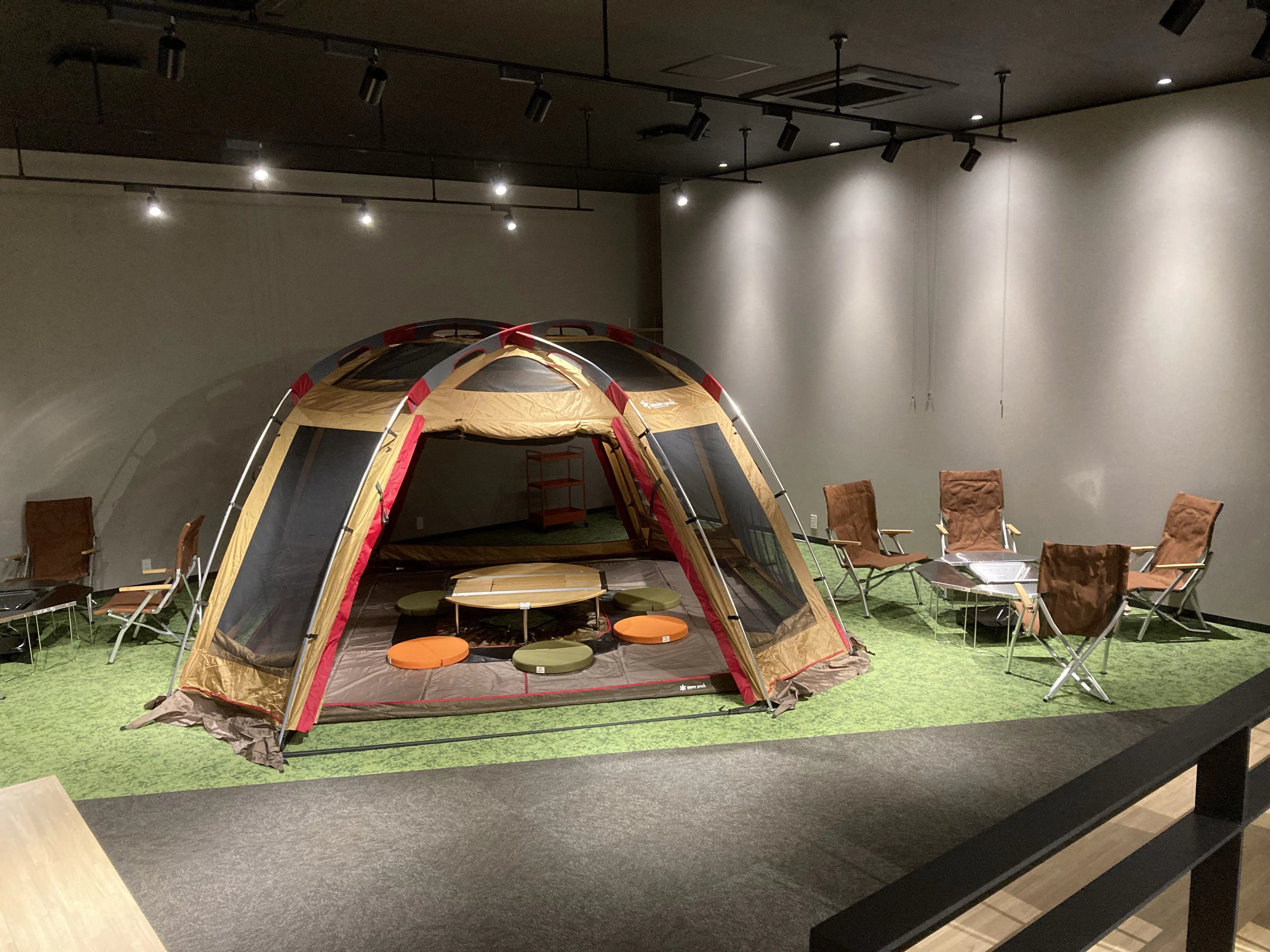 コミュニティースペースはテントやキャンプチェアーの利用が可能です。ゆったりとした空間で作業できます。