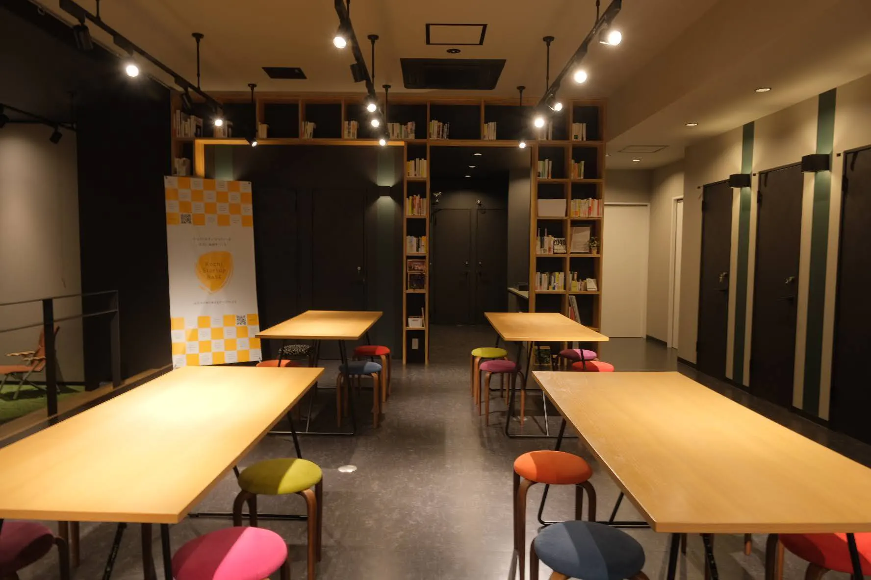 コワーキングスペースには本棚が設置してあり、どなたでもご自由に読むことが出来ます。