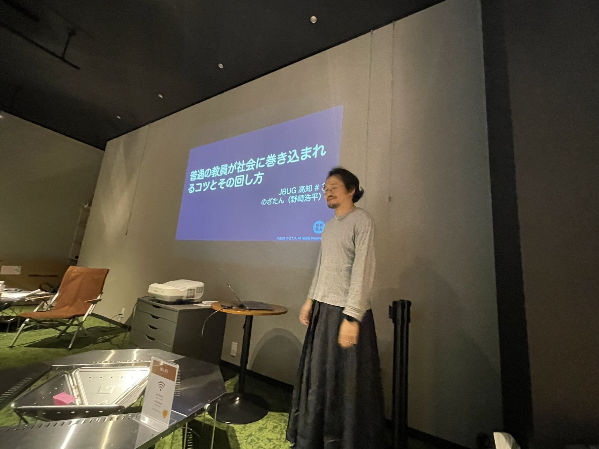 Backlogユーザーコミュニティのイベント「JBUG高知」が当施設 Kochi Startup BASE で開催されました。会場の提供をする際に、イベントで登壇しませんかとお誘いをいただきました。「普通の教員が社会に巻き込まれるコツとその回し方」というタイトルで当法人代表の野崎が登壇したことについて紹介いたします。