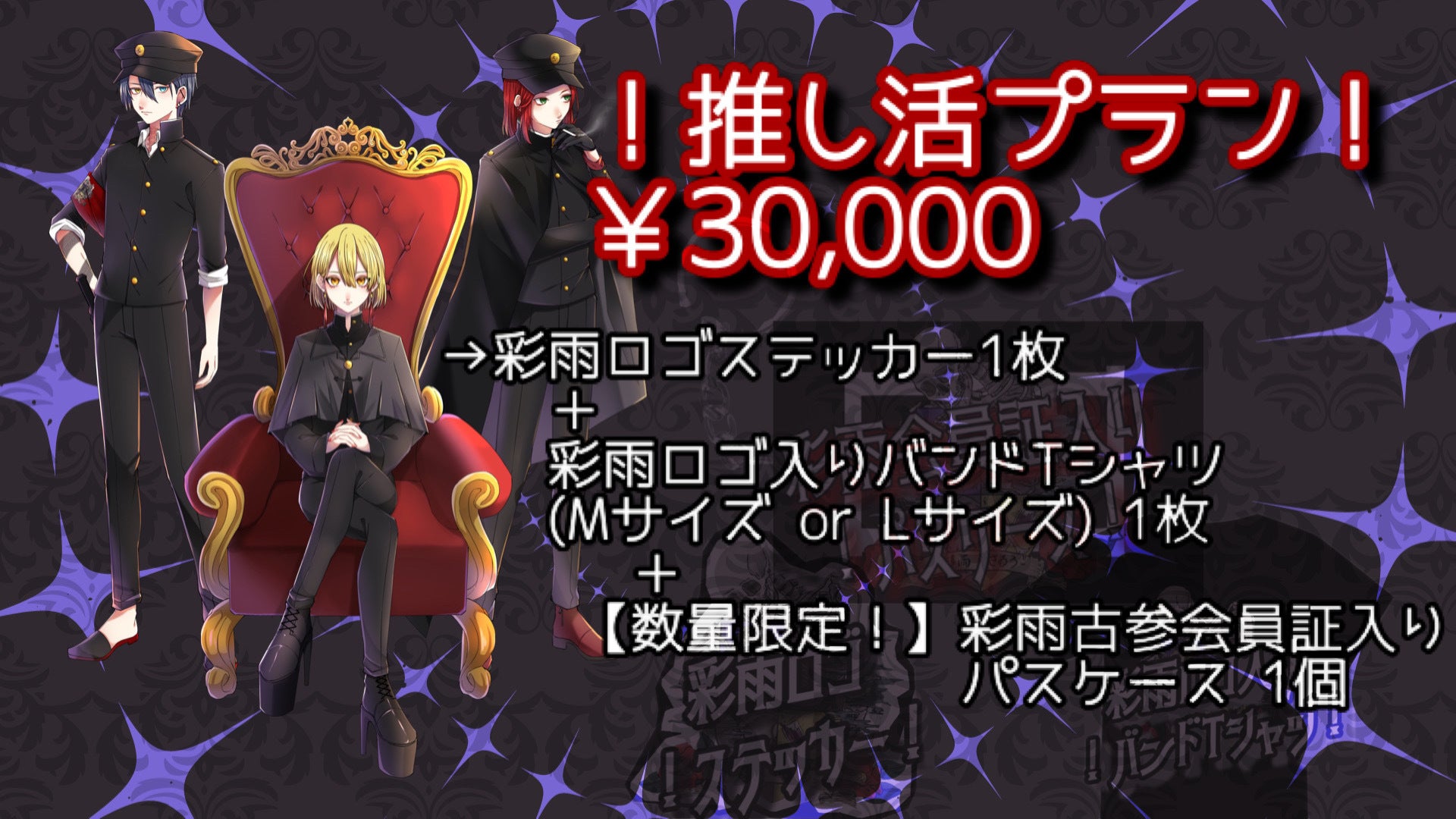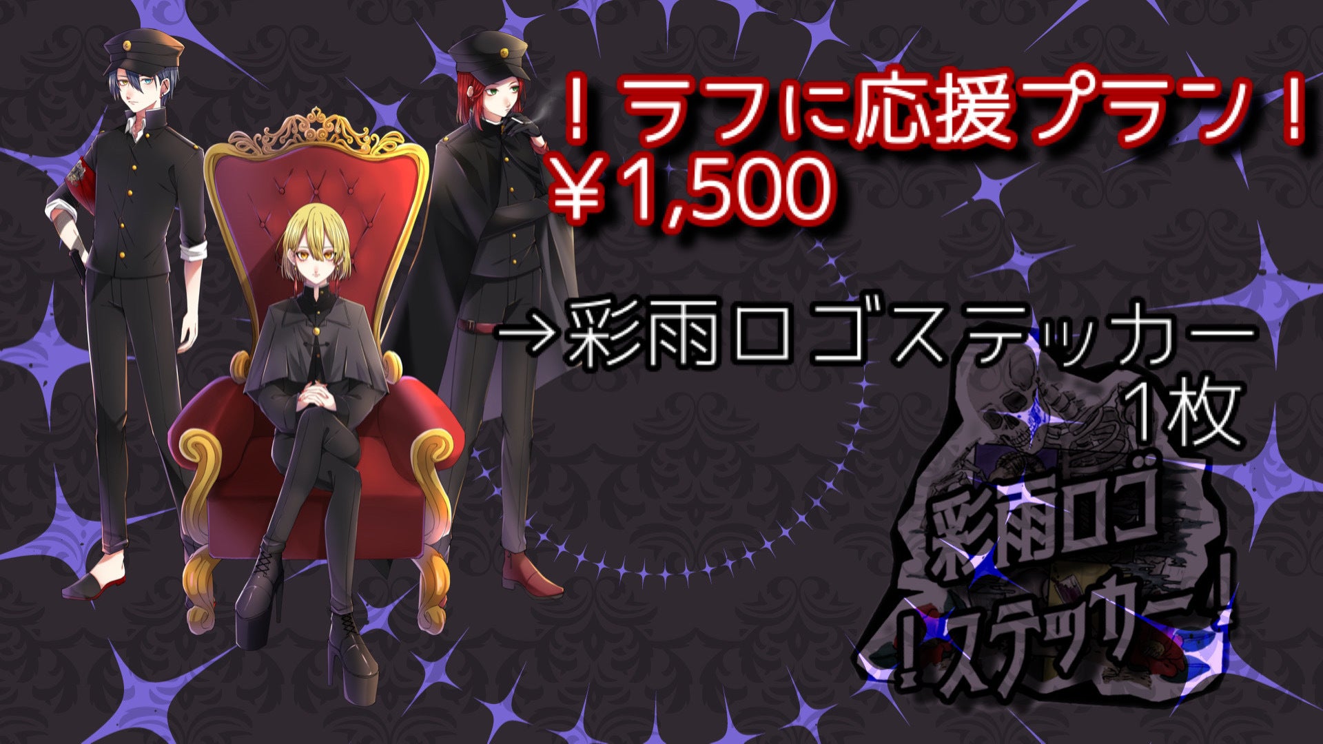 ¥50,000 … 彩雨ロゴステッカー(70mm×70mm以内を想定しています) 1枚