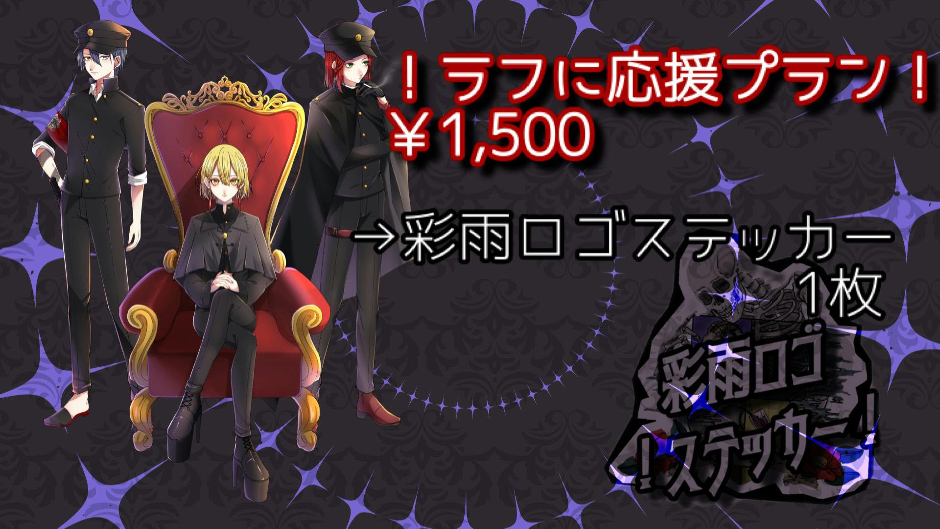 ¥30,000 … 彩雨ロゴステッカー(70mm×70mm以内を想定しています) 1枚
