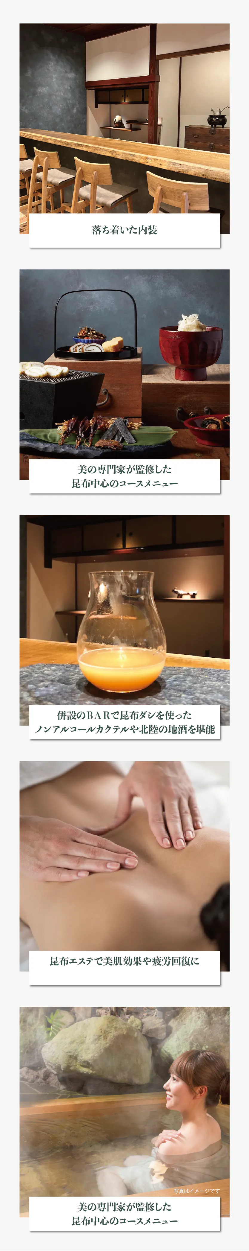 昆布の保湿成分や美肌成分を体験できる昆布エステをお楽しみください。