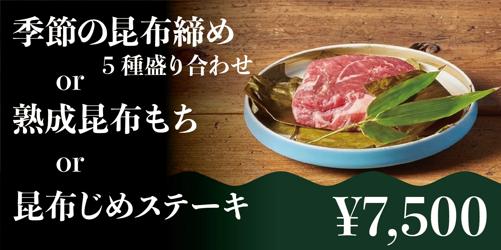 お食事は併設の昆布BARにてお楽しみいただきます。コース以外にも、単品メニューもご用意しています。
