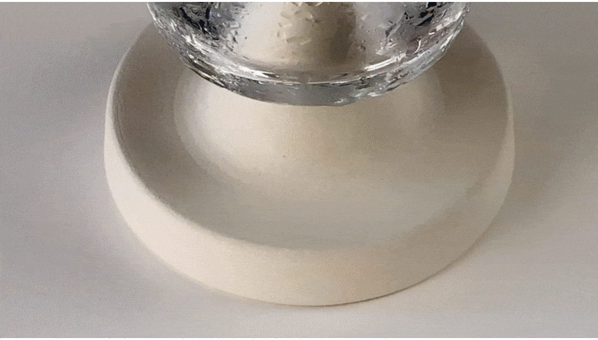 グラスの底には突起(凸)があり対流効果で飲み物の「香りを引き立て、味のバランスを調える」効果があります(グラス単体でもご使用いただけます)。土台となるステム部分は「結露による雫を瞬時に吸収」してくれるのでコースターの役割を果たしてくれます。