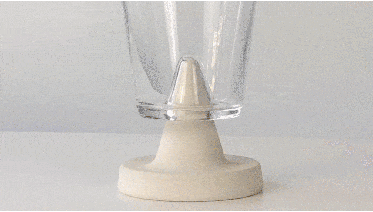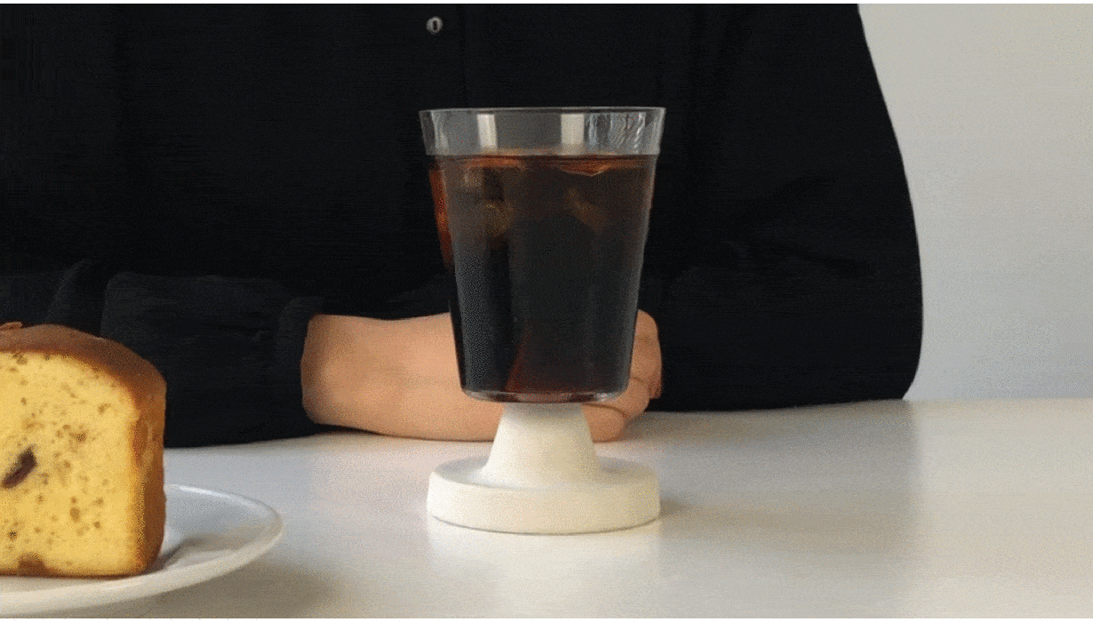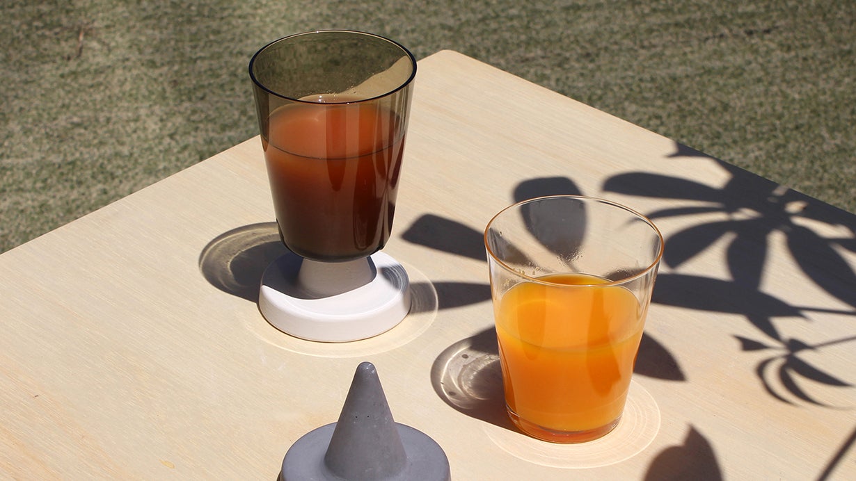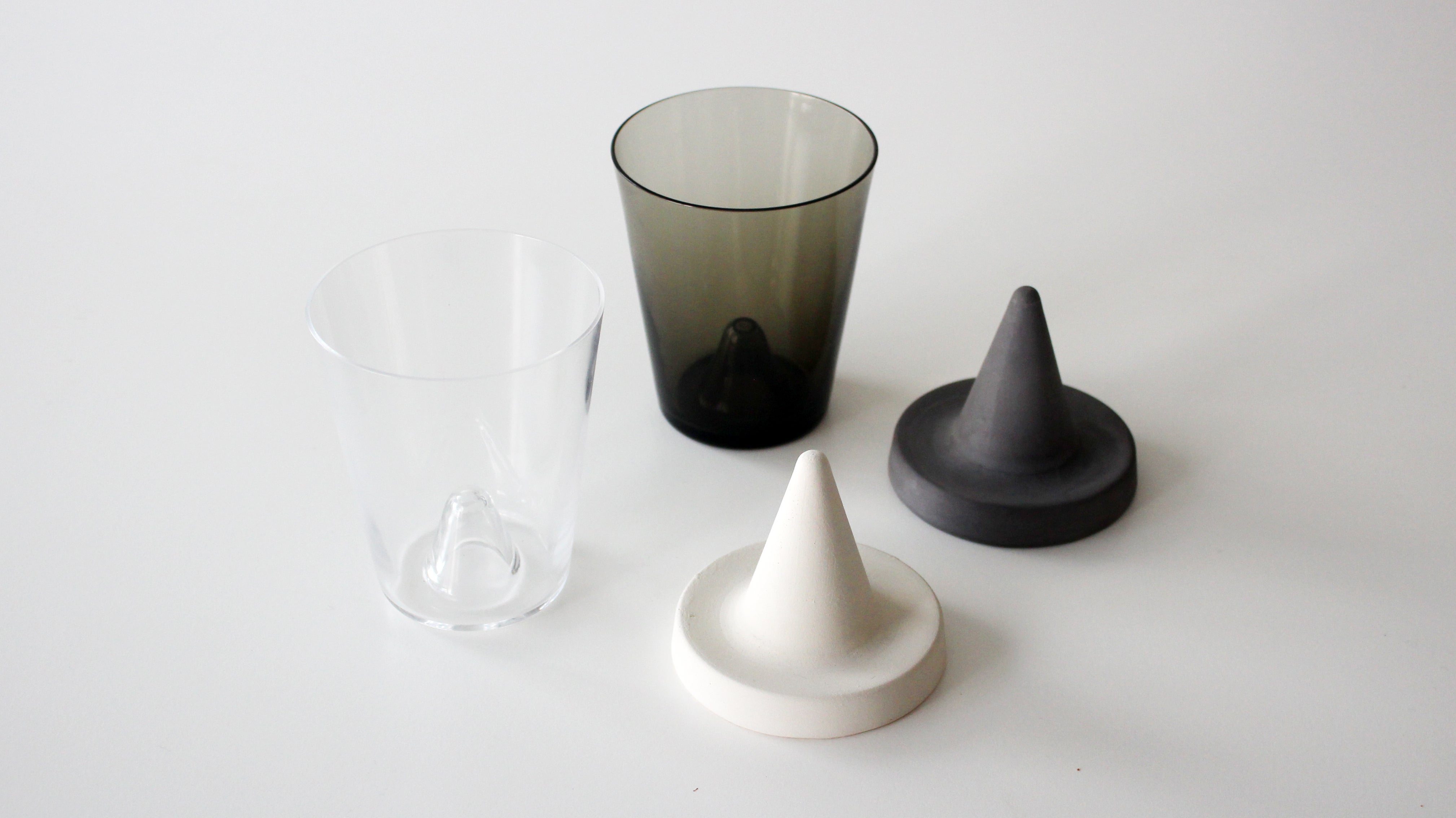 コースターは三角コーンのような円錐なので、向きを気にせず誰でも簡単にグラスを差し込むことができます。