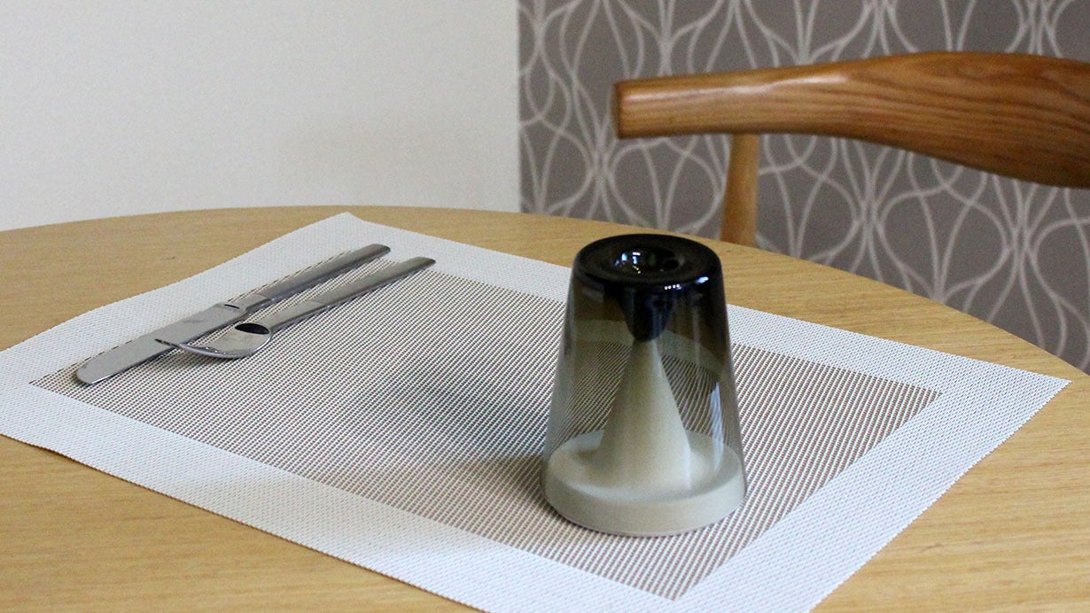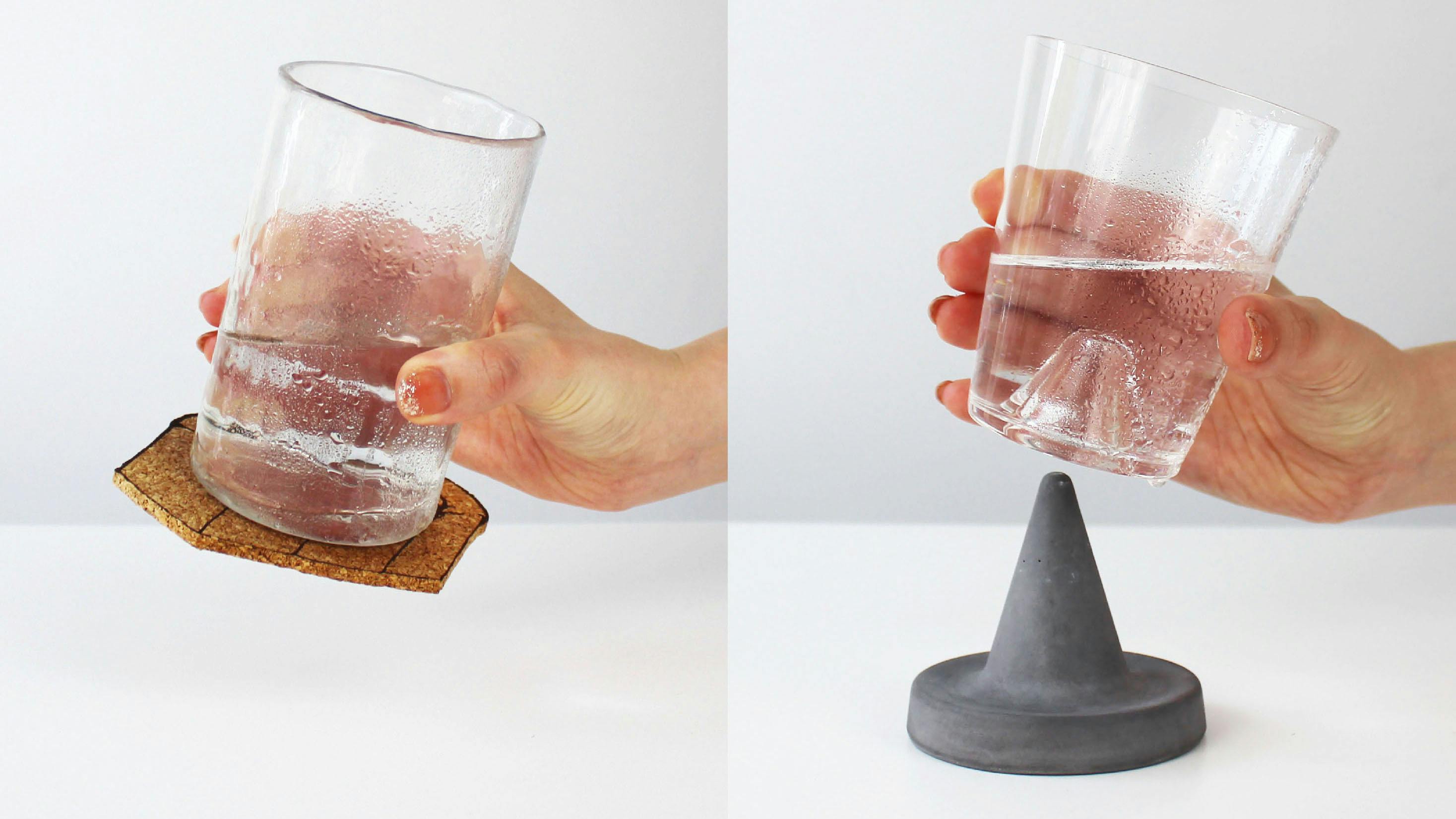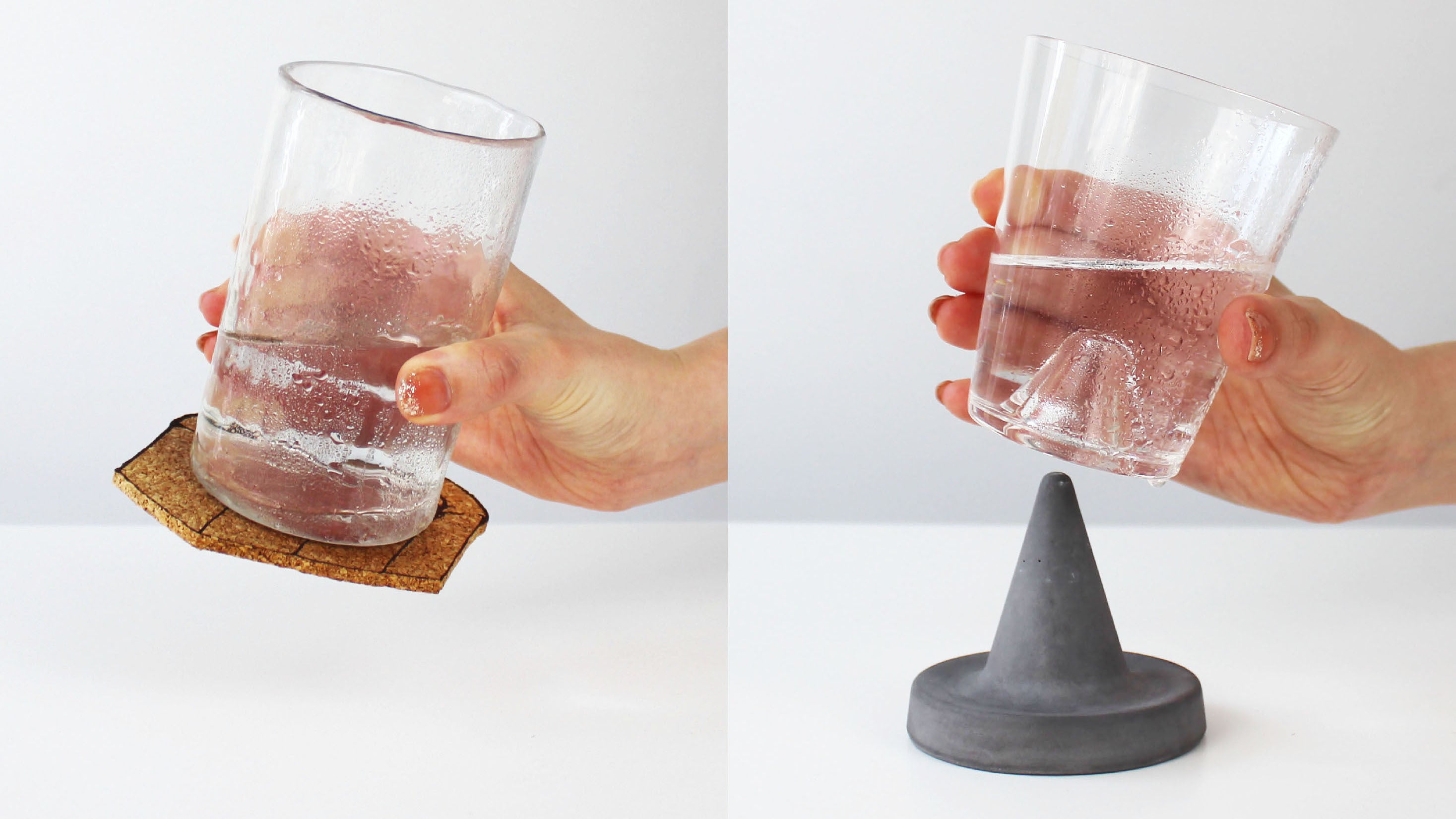 コースターは三角コーンのような円錐なので、向きを気にせず誰でも簡単にグラスを差し込むことができます。