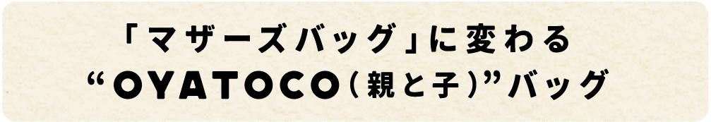 そんな中「マザーズバッグ」という言葉に疑問を感じ、はじまったプロジェクト『OYATOCO(親と子)バッグ』。