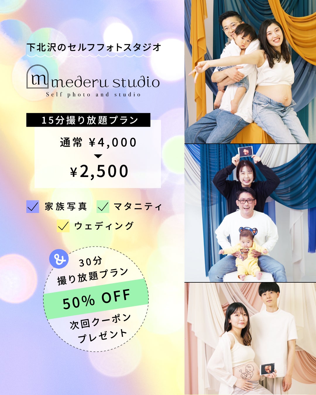 7月9日(日)に下北沢の人気セルフフォトスタジオmederu studioにて家族写真をリーズナブルに撮れるイベントを開催。