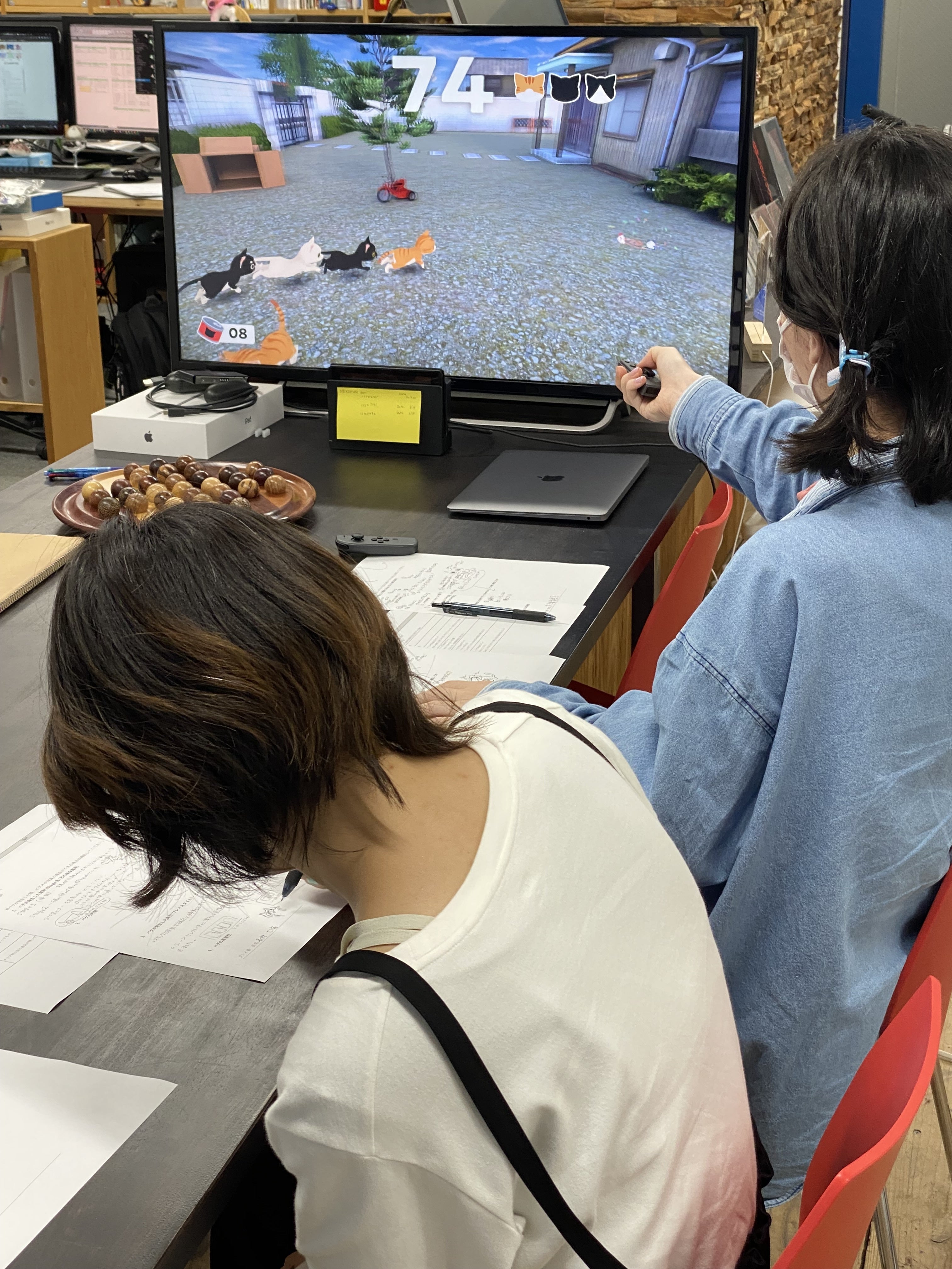 学生達がログを取りながら不具合や修正点を見つけるプレイ中です。