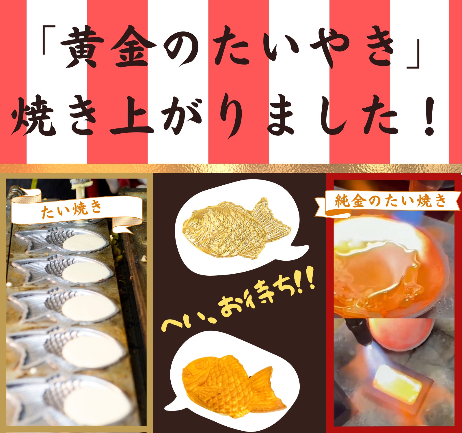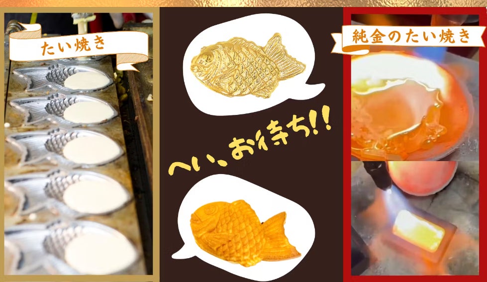 純金のJUNGOLDが贈る黄金のたい焼き!プラチナもあります.