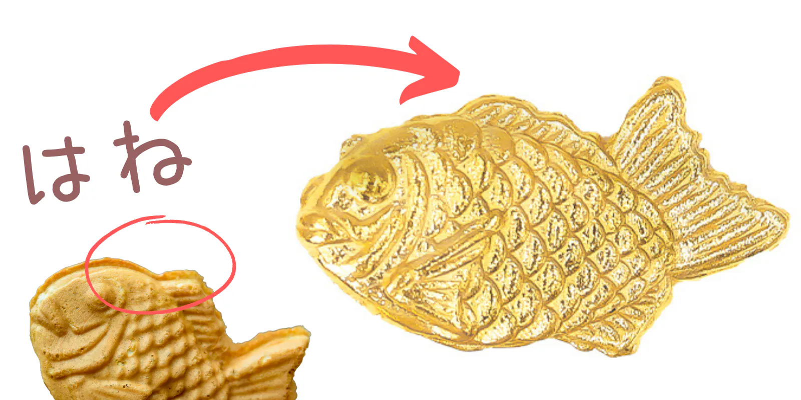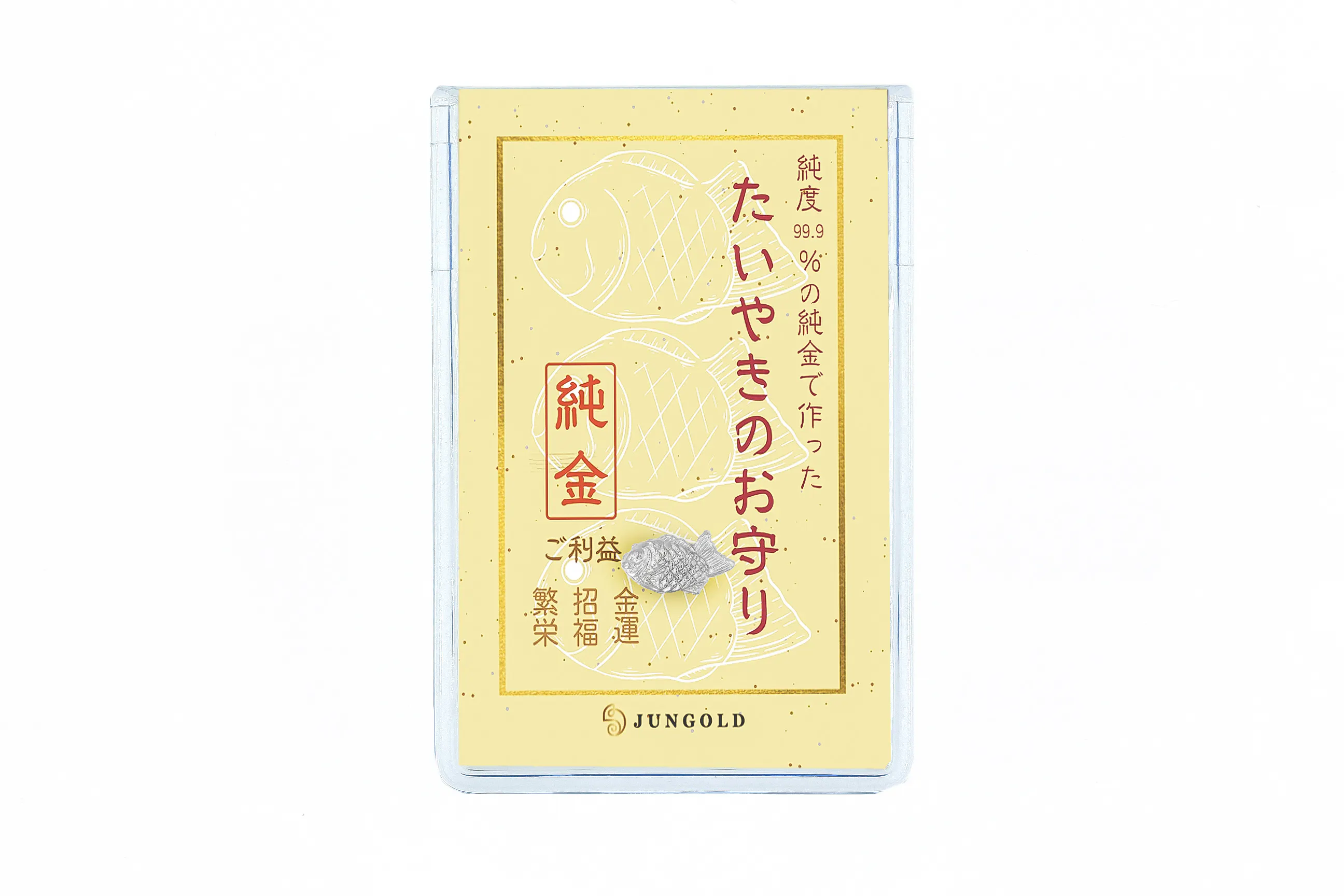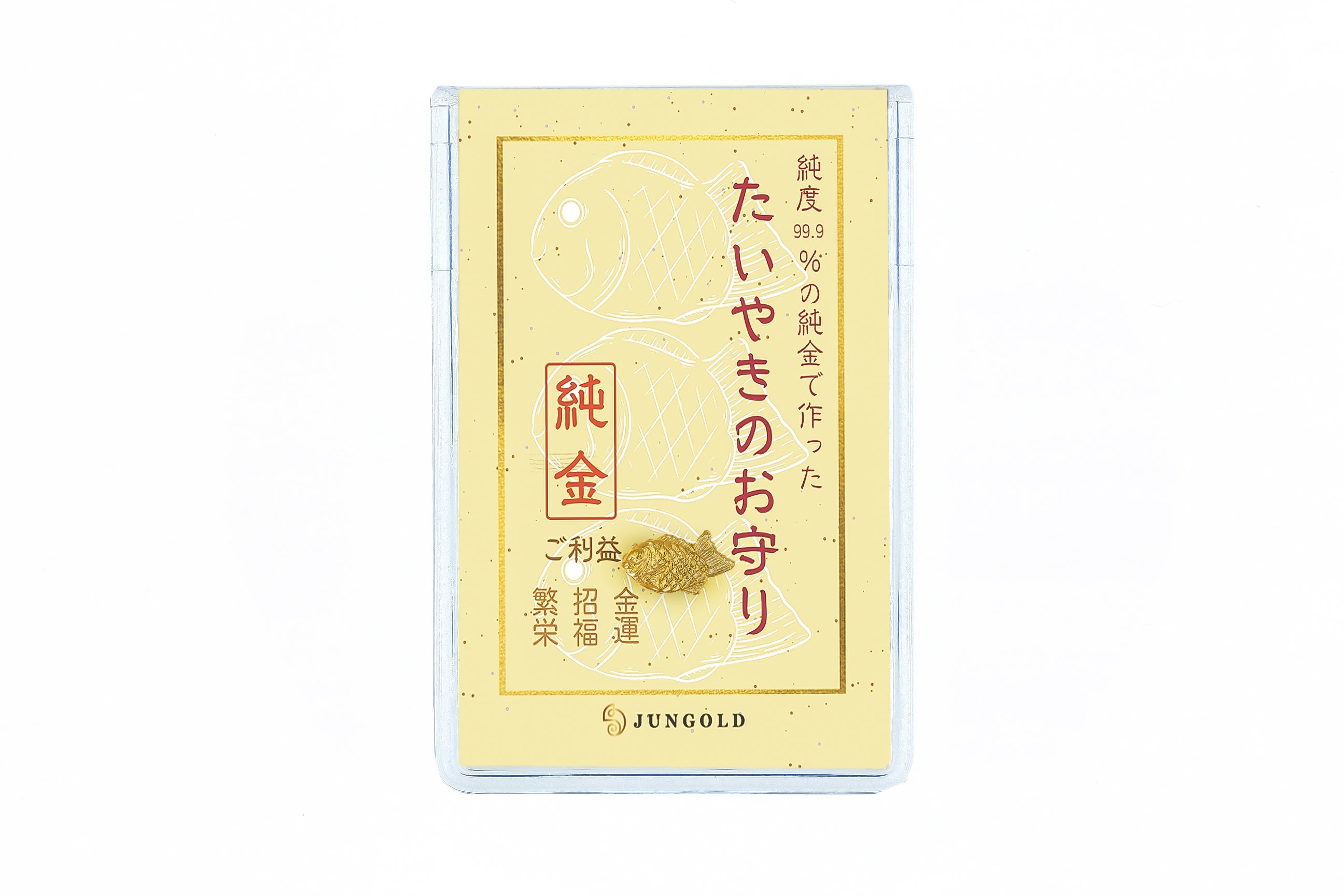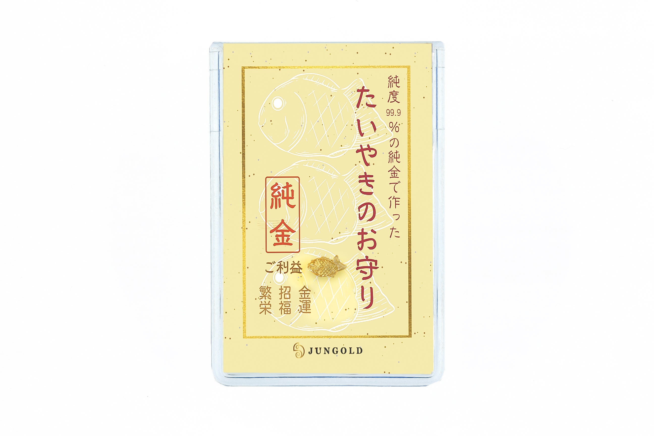 今回は、鯛を形取った日本の大人気商品「たいやき」を、かわいい黄金のお守りにしました。