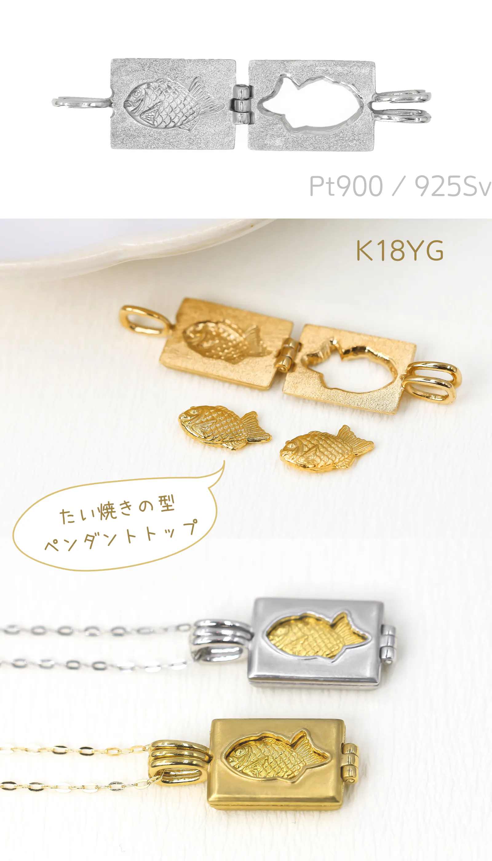 *たい焼きの型 専用ペンダントトップ 925シルバー / プラチナ900 / K18イエローゴールド *チェーンはつきません