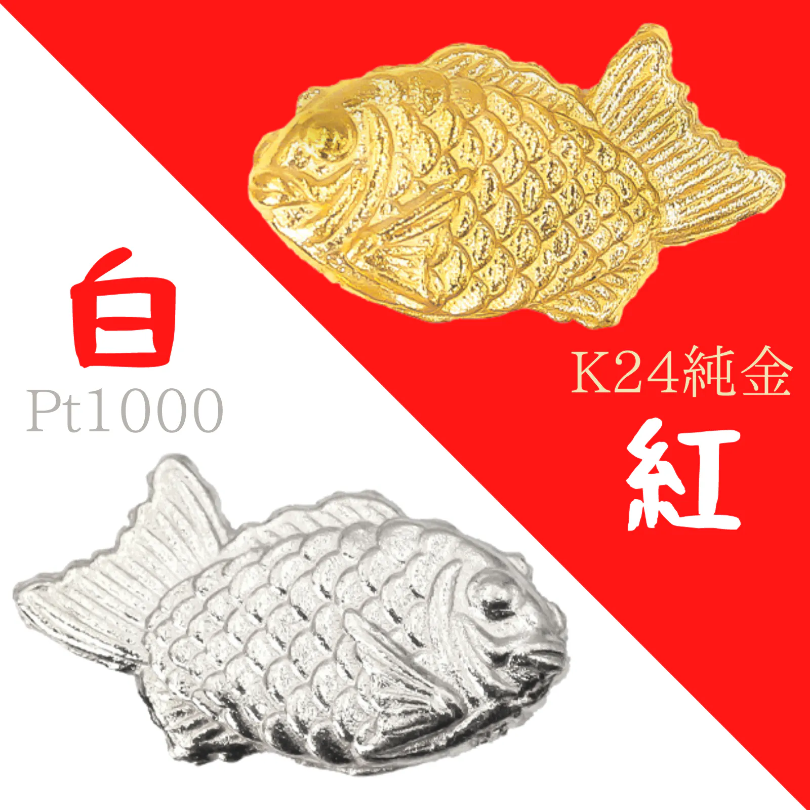 ◆【たいやきのお守り 大】 K24純金 / プラチナ1000