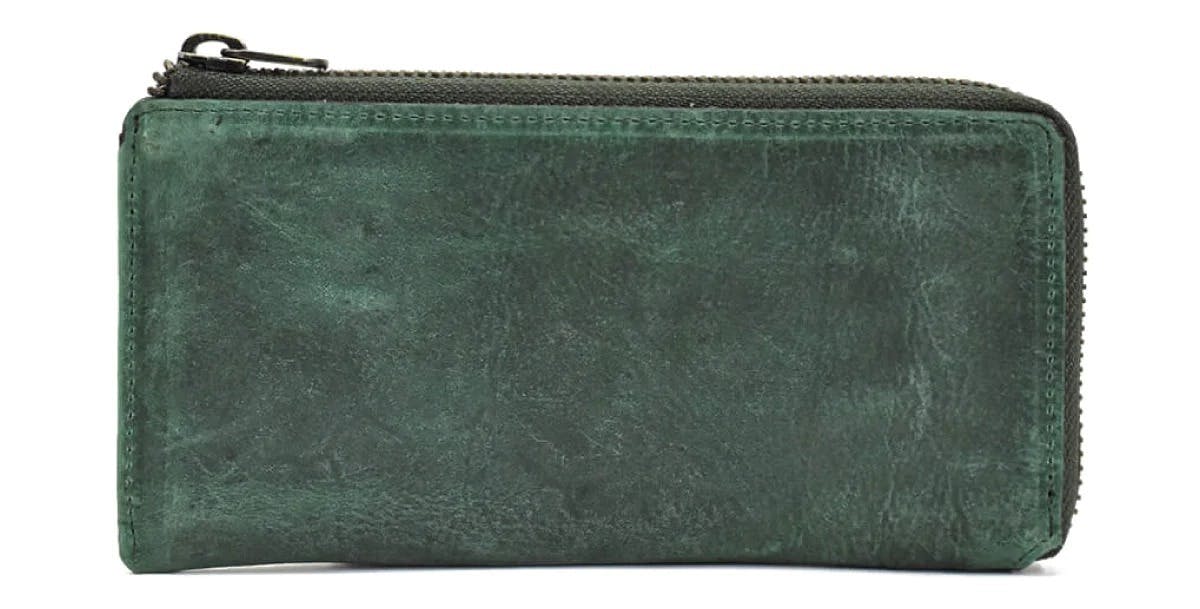 一万円札が折らずにちょうど収まる、ファスナータイプの長財布では紙幣と干渉しないほぼ最小サイズに仕上げています。