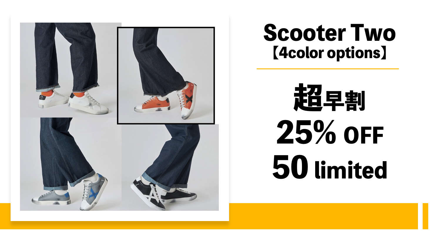 Scooter Twoは、前作で最もご評価いただいていた『いつまでも新品の美しさを保つ防汚性』『履き続けていたい快適性』はそのままに、よりデザイン性を追求し開発されました。