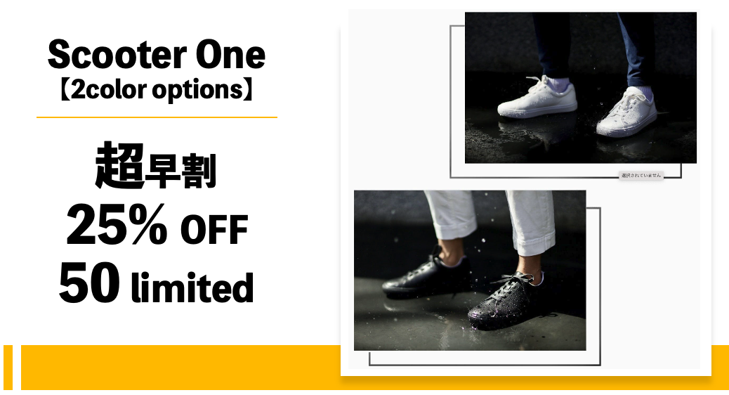 2024/02/17 16:04ページをご覧の皆様改めて、Scooter Oneにご興味をお持ちいただき誠にありがとうございます!本日は皆様に新商品のお知らせがあり、ご連絡致しました。3年前に日本に初上陸したScooter Oneは累計2000足以上、3000万円以上のご支援を集めることができました。今回、皆様からのフィードバックをもとに改良を重ね、・より履きやすく快適さを追求した『Scoote One Relax』・デザインを変え美しいレザーの質感を活かした『Scoote All faith』を開発致しました!こちらのリンクより是非商品のチェックをお願い致します!https://camp-fire.jp/projects/view/714339お得な25%のオフの先行予約販売価格からご案内させていただいております。どうぞご検討お願い申し上げます。 もっと見る