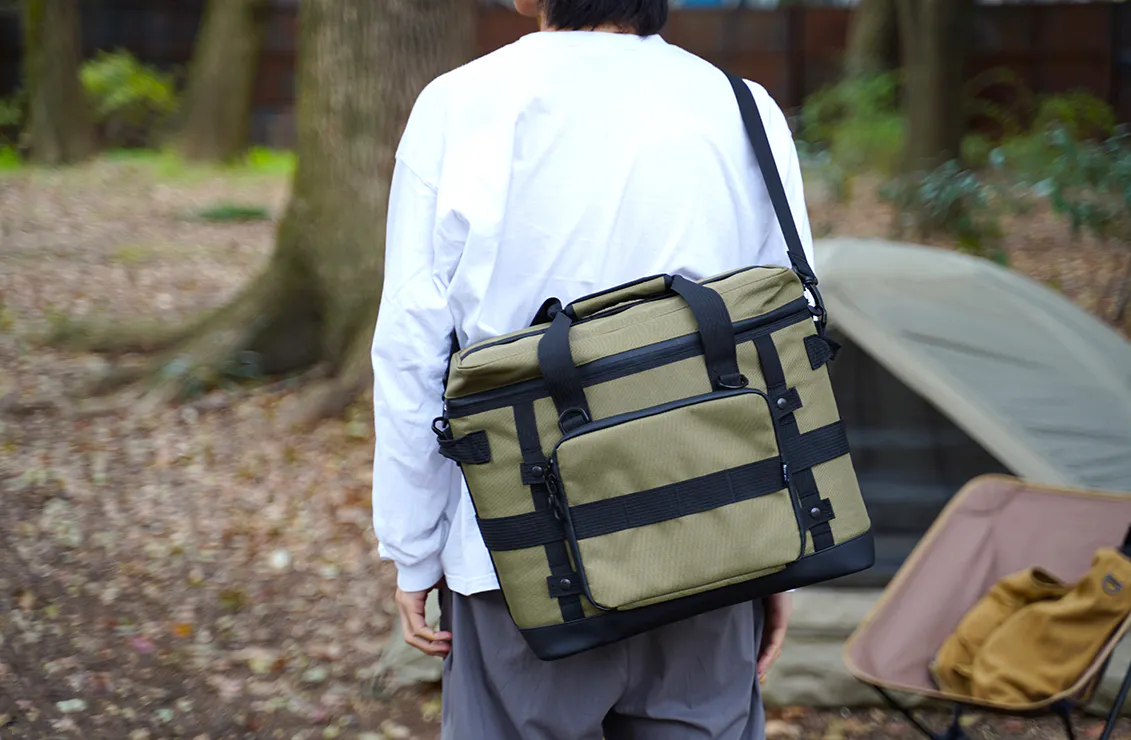 駐車場が遠いサイトや無人島でのキャンプ、登山での食材運びなどにも大活躍!ショルダーベルトを2本使用することで、リュックとして使えます。